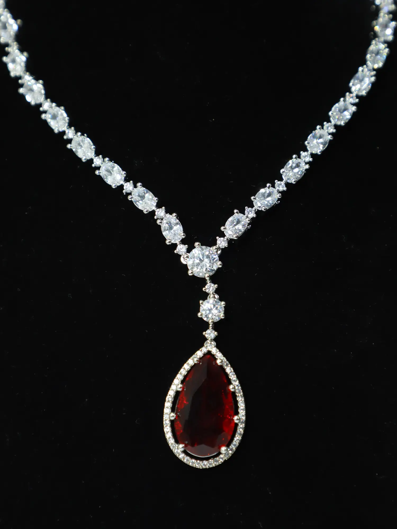 Elegant American Diamond Stone Studded Necklace With Matching Earrings