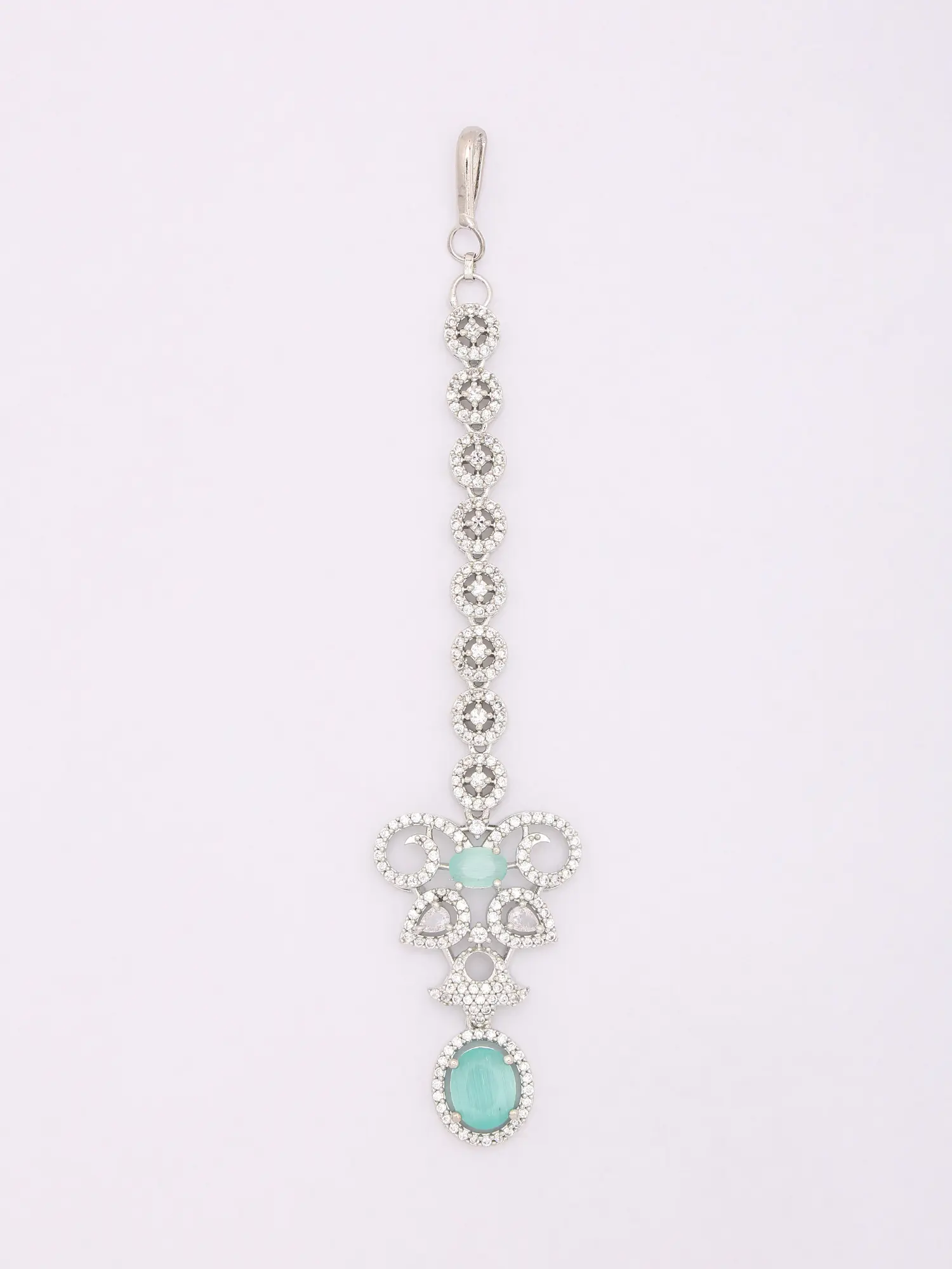 American-Diamond Stone Studded Necklace Set with Maang Tikka