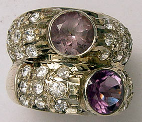Sterling Silver Ring with Faceted Amethyst Stones