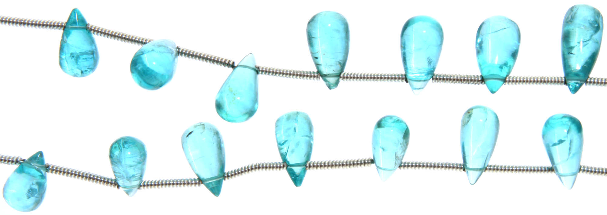 You'll appreciate the meticulous attention to detail that defines these exquisite stones. Each teardrop has been carefully shaped and polished, revealing the natural brilliance of the apatite. The smooth, faceted surfaces catch the light, creating a mesmerizing play of color that speaks to a tradition of artisanal craftsmanship.