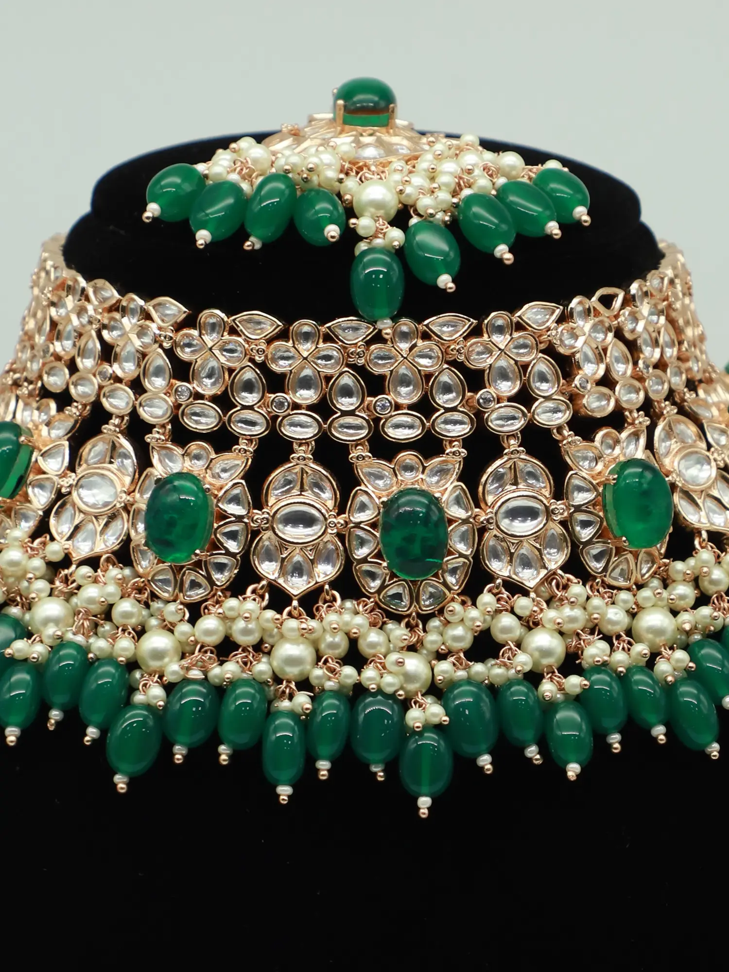 Golden and Blue Wedding Anarkali Suit with Zari-Embroidered Flowers and Crystals