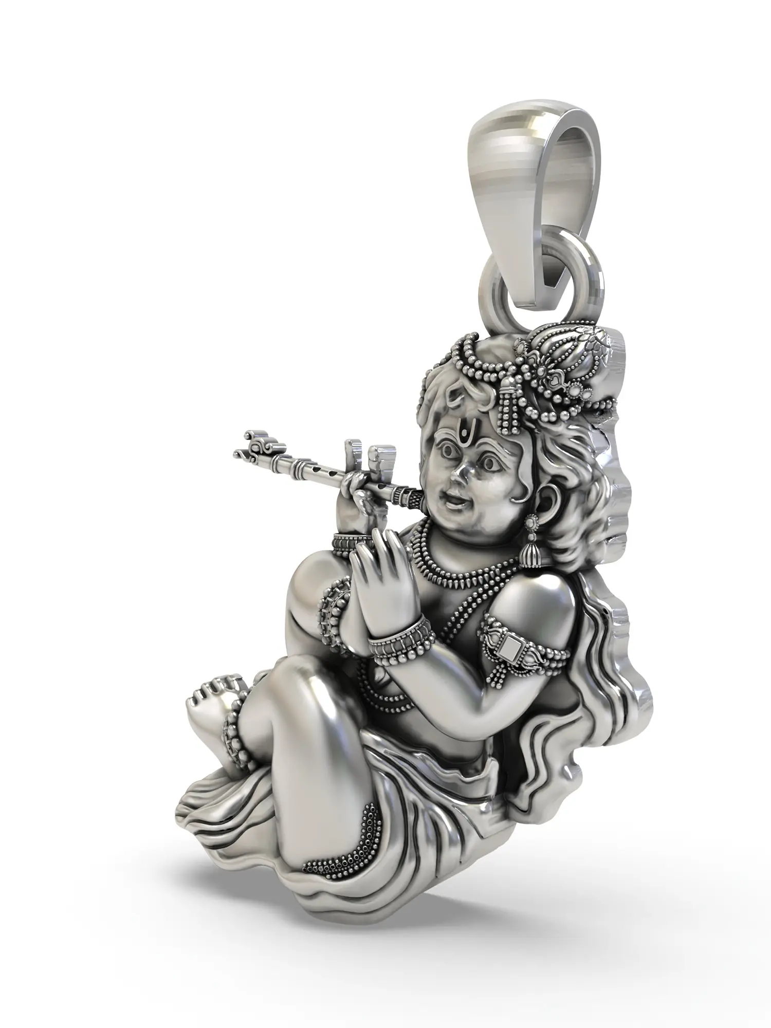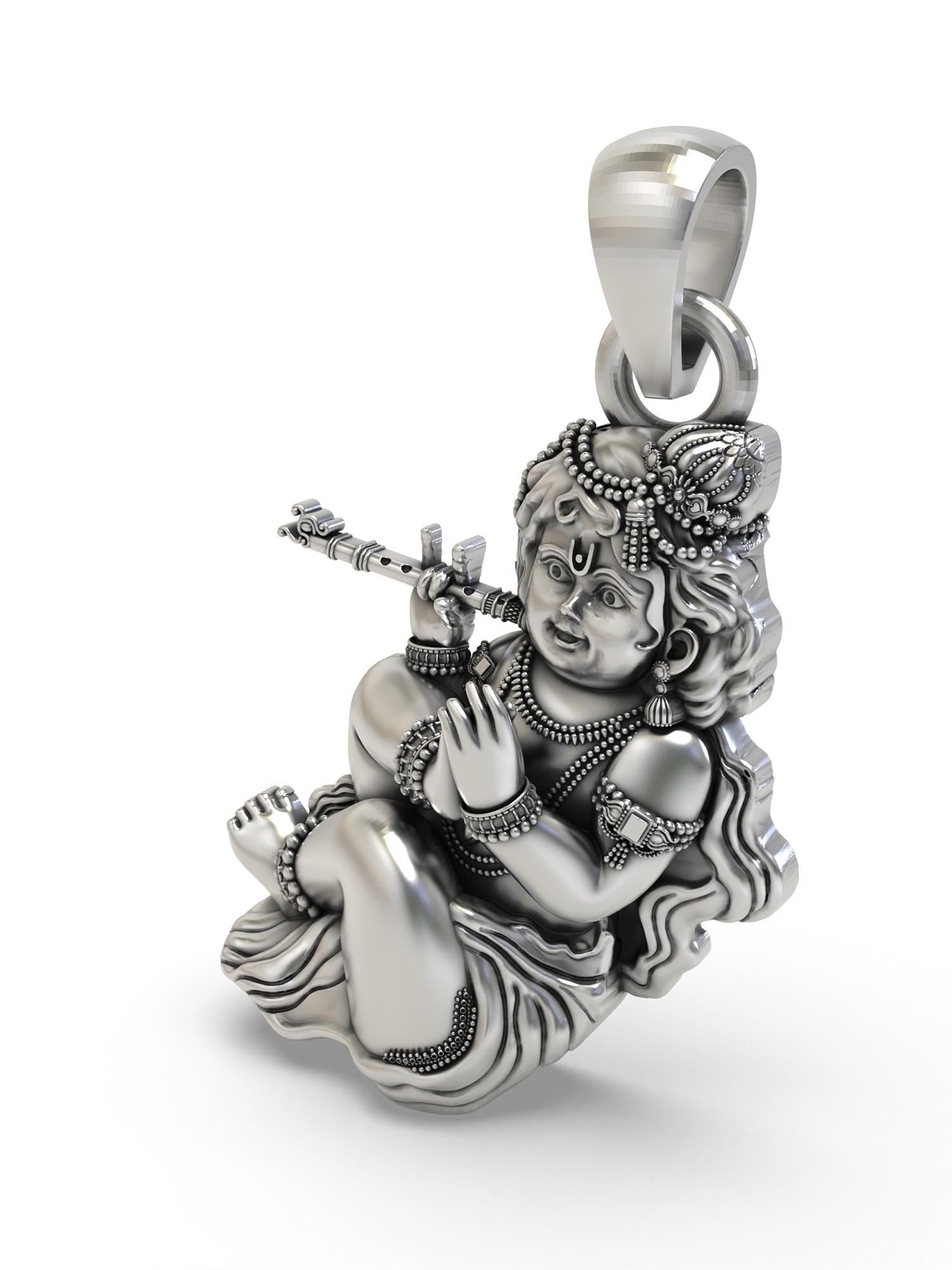 Lord Krishna Playing Flute Sterling Silver Pendant
