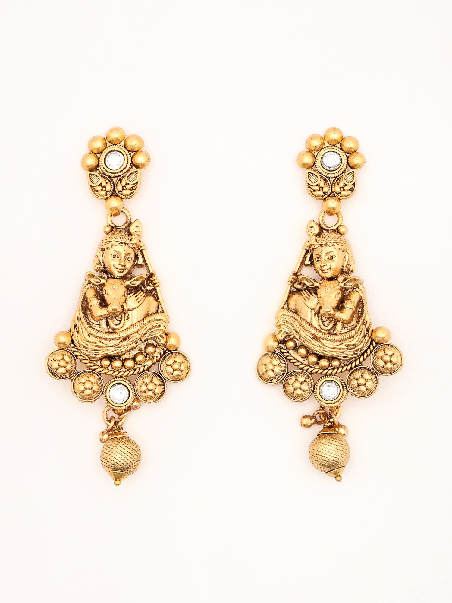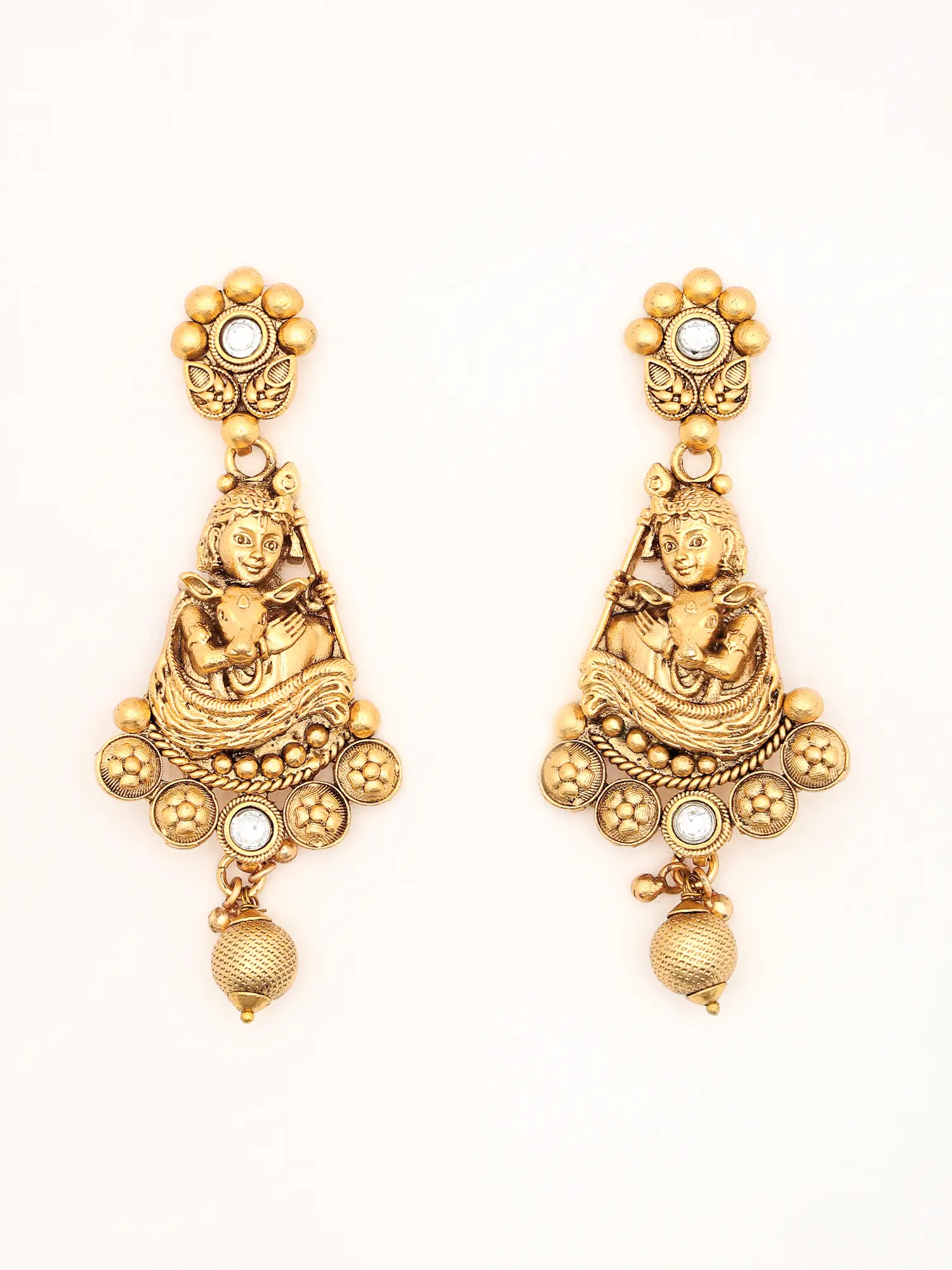 Stone Studded and Beaded Fluting Krishna with Cow Necklace Set with Earrings