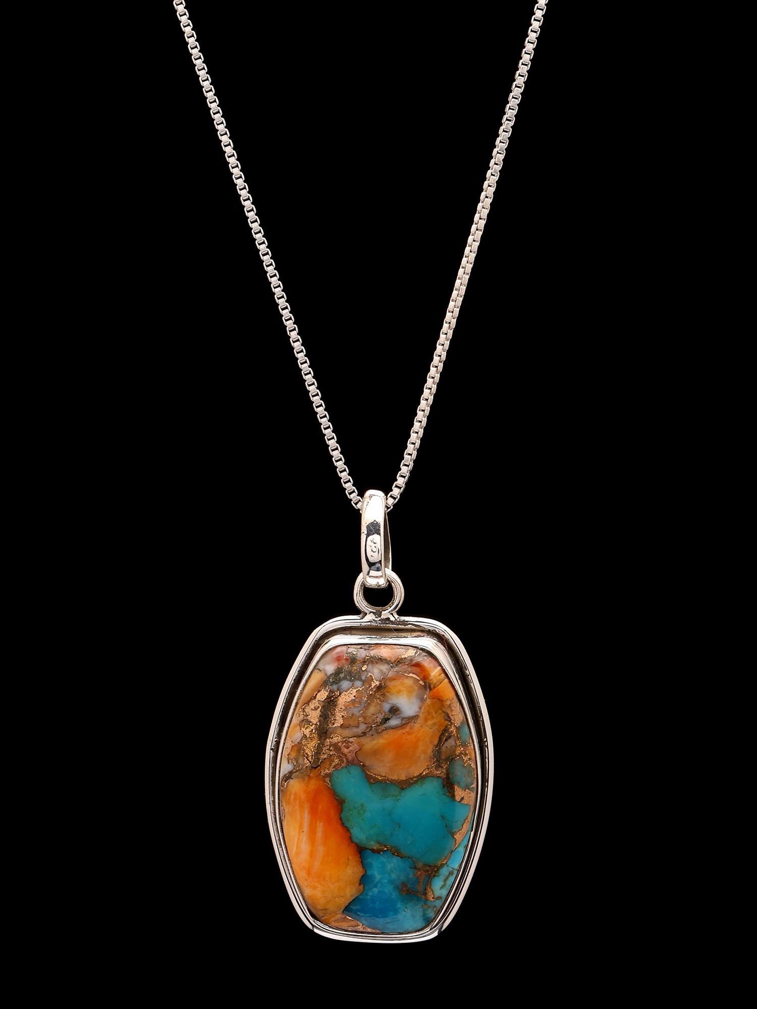 Pear-Shaped Pink Spiny Oyster Copper Turquoise Pendant in Silver Wire Loop Design