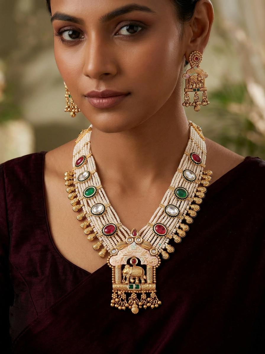 Imagine this set gracing your presence at significant celebrations, from intimate gatherings to grand soirées. It’s the perfect complement to traditional attire, adding an unparalleled touch of opulence, or can serve as a statement piece to elevate contemporary fashion. The matching earrings offer versatility, allowing you to wear them independently for a more subtle yet equally sophisticated look.