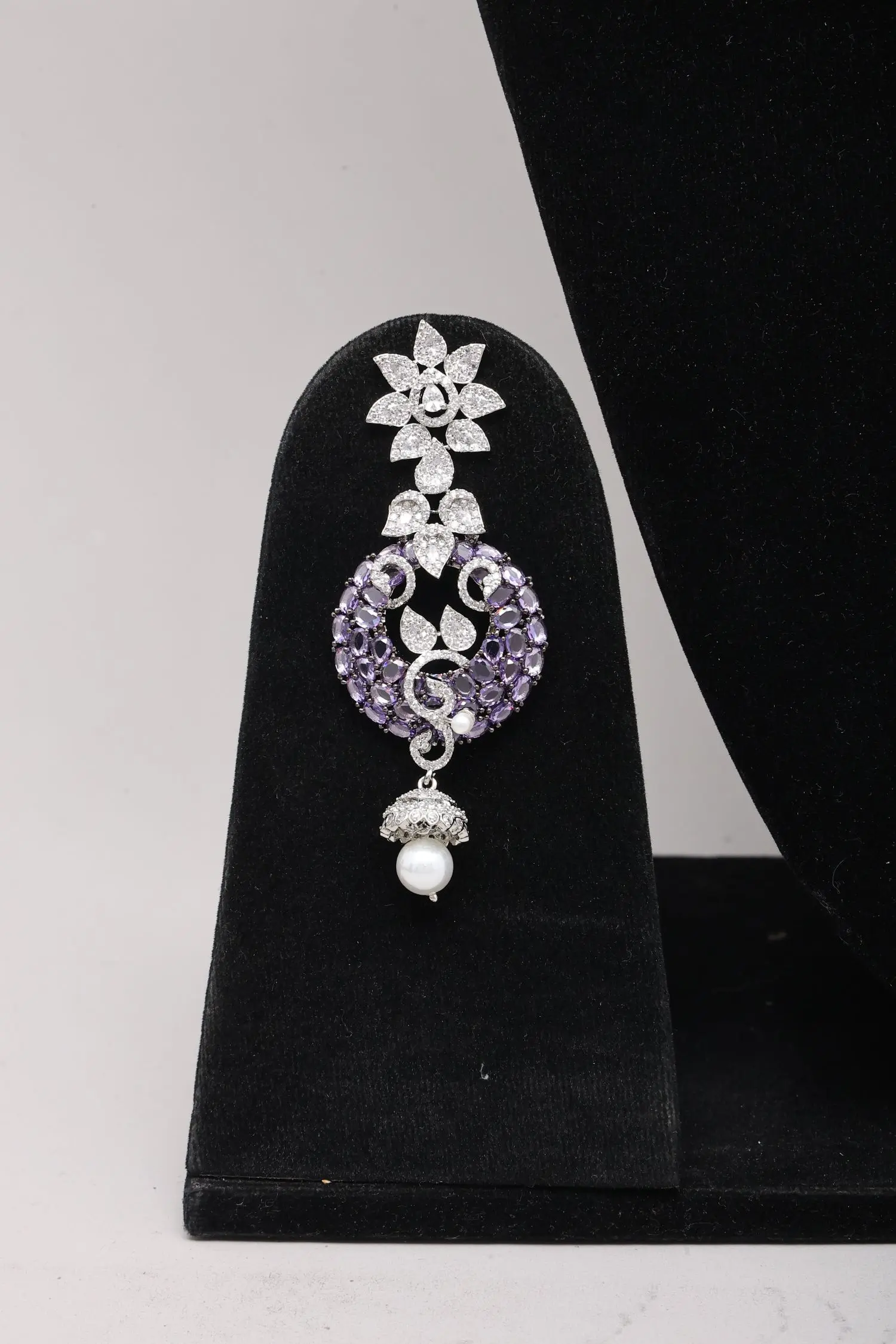 Each element of this exquisite creation is a testament to meticulous craftsmanship. Fashioned from premium brass, it showcases a foundation of enduring quality. The careful selection and setting of numerous zircon stones, interspersed with lustrous pearls, speak to a dedication to detail that elevates it beyond mere adornment.
