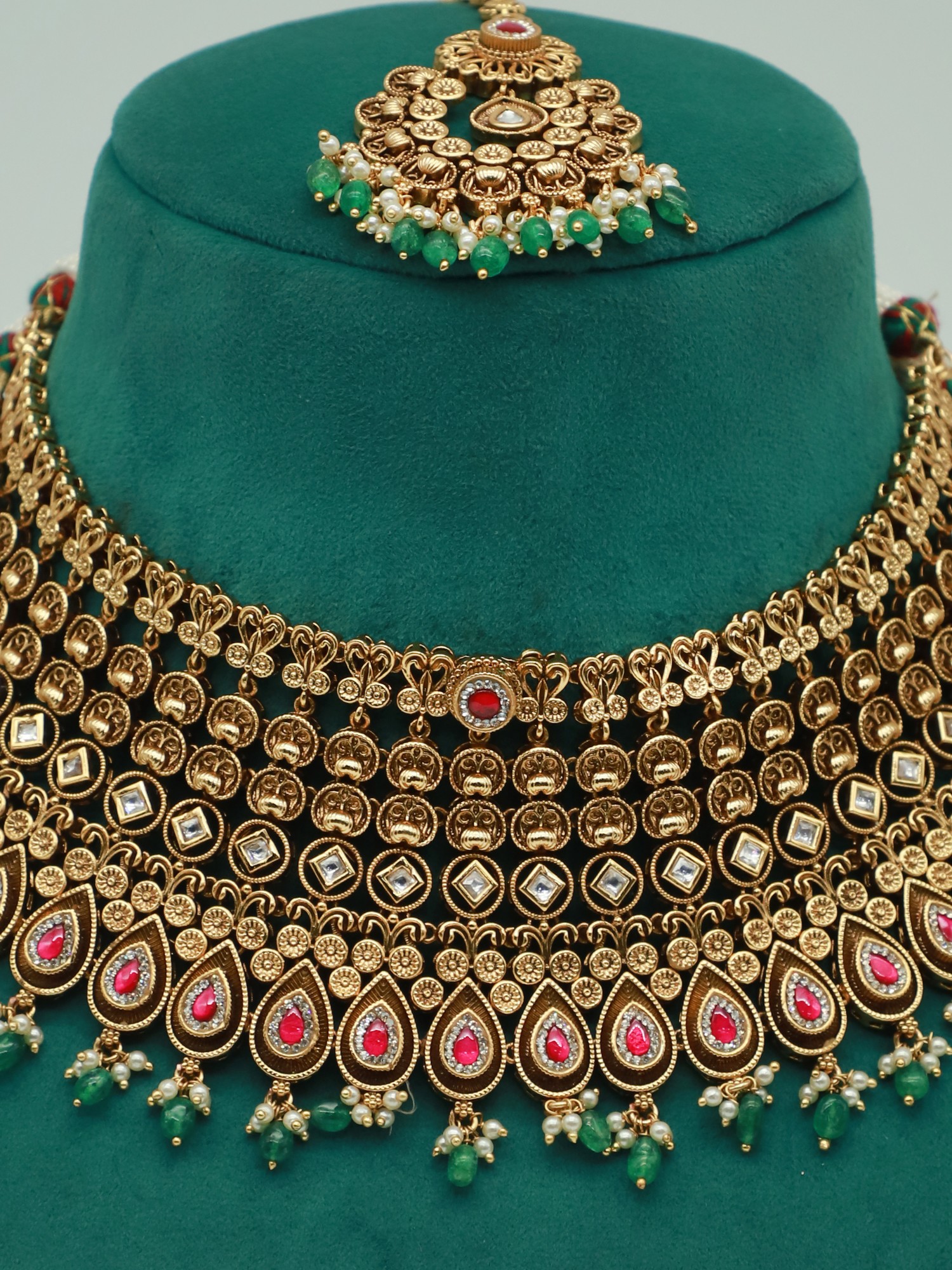 NECKLACE : 17 INCH LENGTH X 4.9 INCH WIDTH EARRINGS : 1.8 INCH HEIGHT X 1 INCH WIDTH
