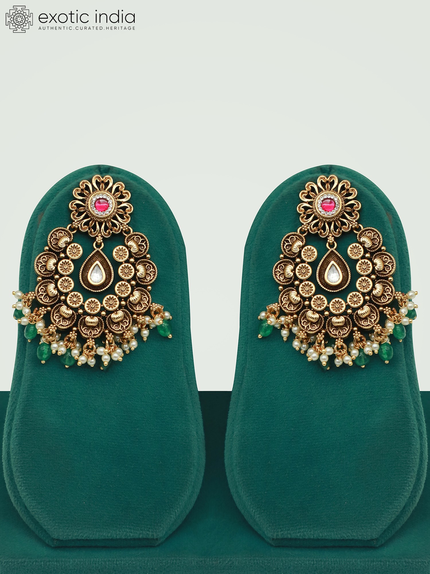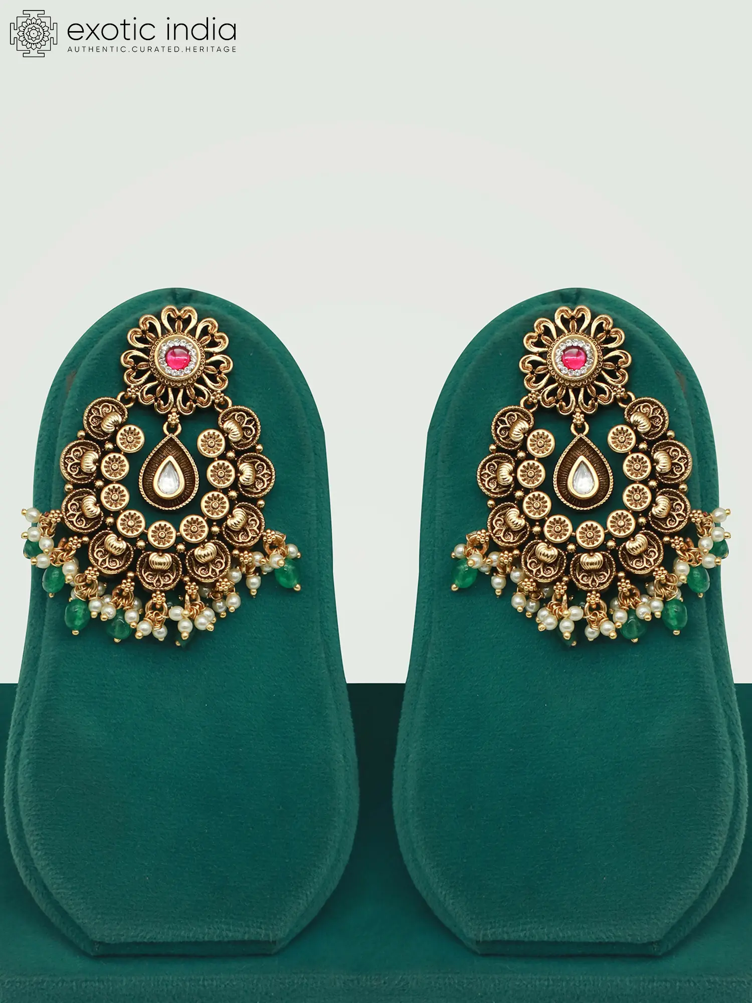 Brass Necklace Set With Beautiful Moissanite Kundan Stone And Earrings