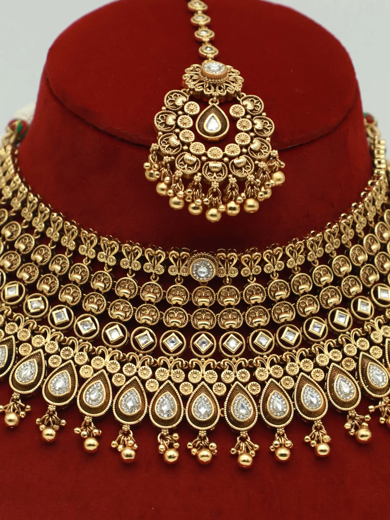 NECKLACE : 8 INCH LENGTH X 6.2 INCH WIDTH EARRINGS : 1.6 INCH HEIGHT X 1 INCH WIDTH