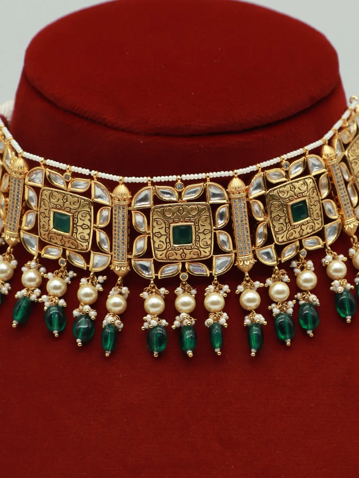Meenakari Design Choker Set With Matte Finishing And Drop Beads