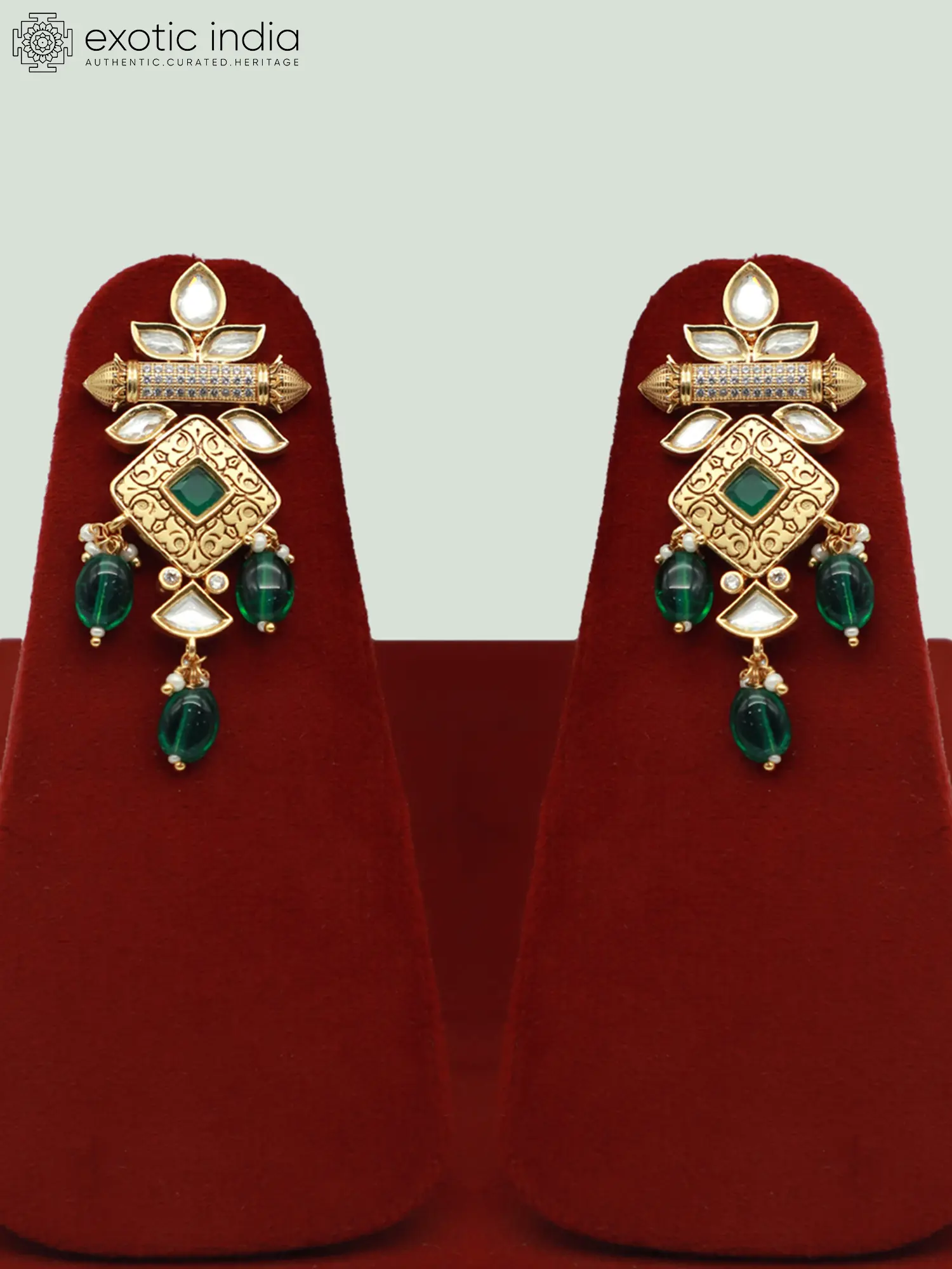 Studded Moissanite Kundan With Matt Polish Fancy Design Necklace With Beautiful Earrings