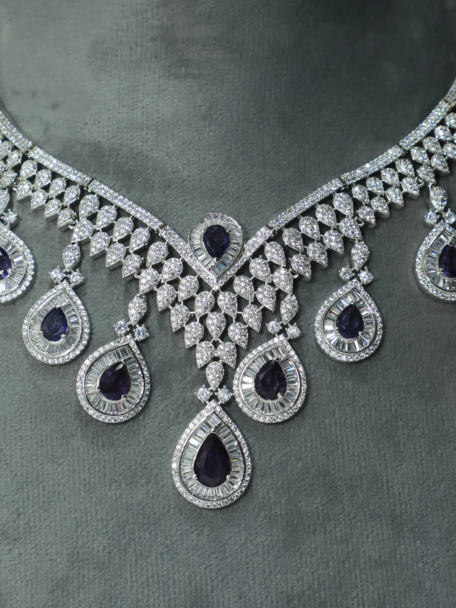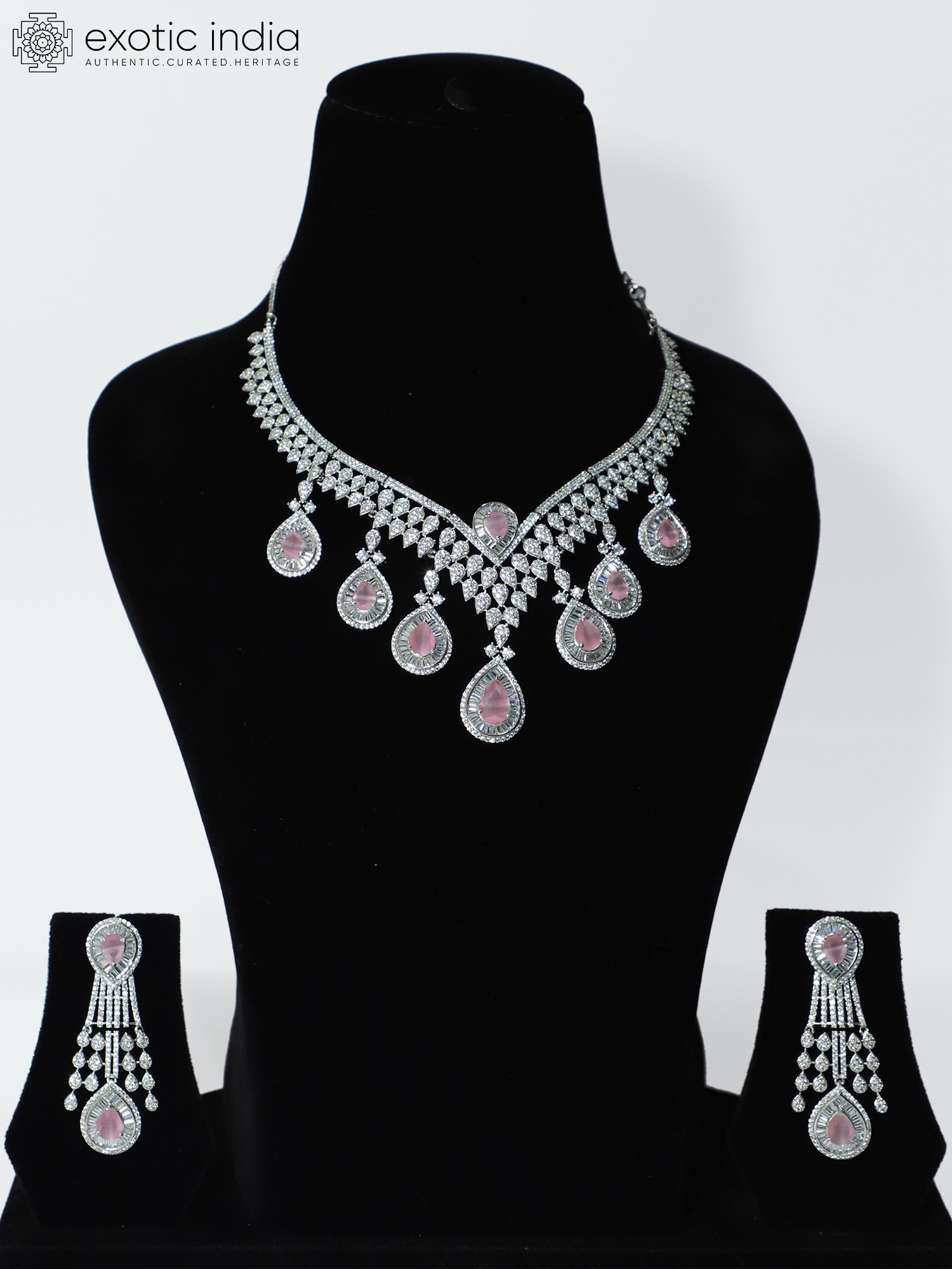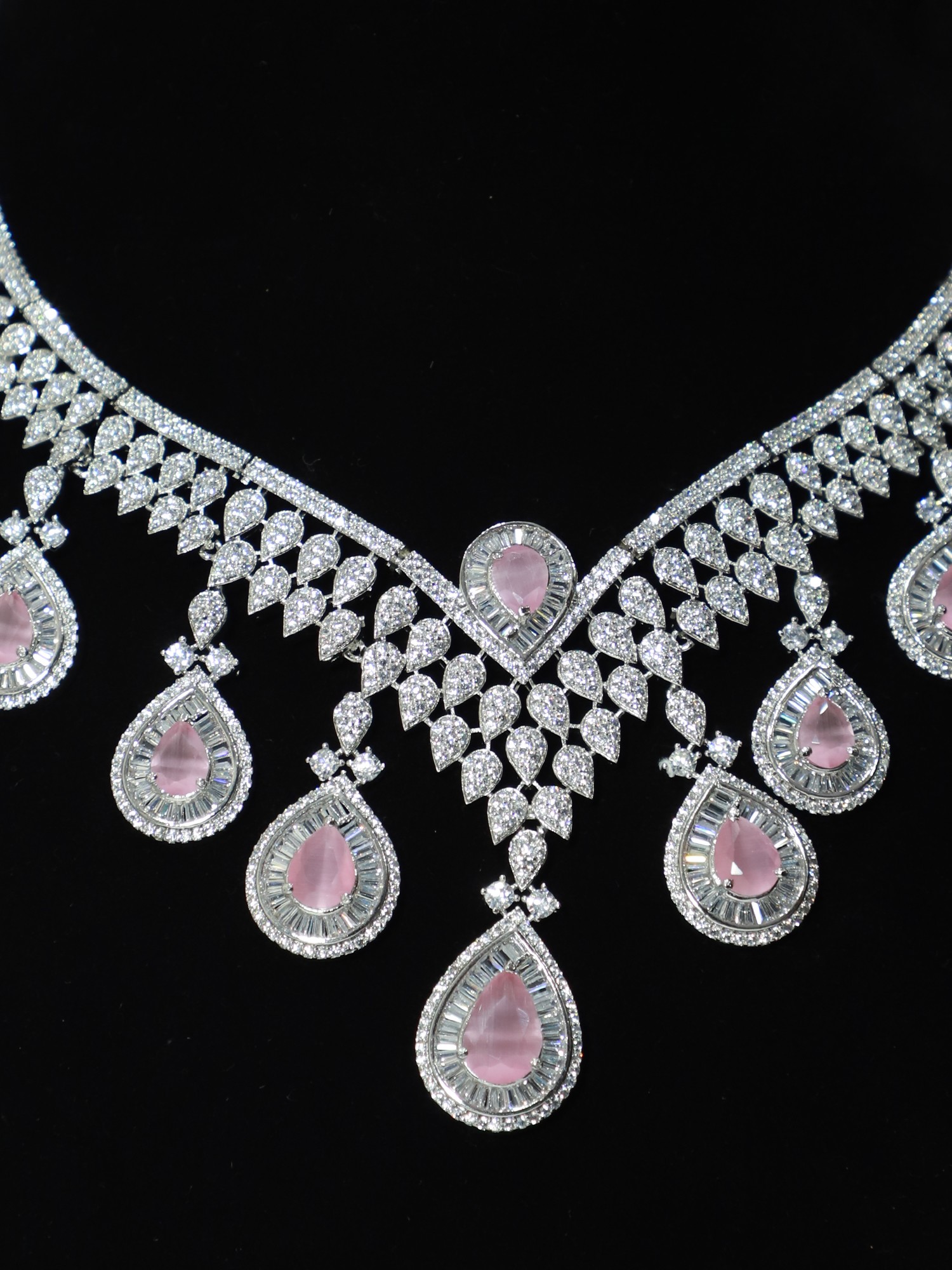 Crafted with a silver polish base, this set offers a classic and timeless appeal that will never go out of style. The silver polish provides a beautiful canvas for the American Diamonds and ruby-toned stones to shine, enhancing their natural brilliance and sparkle. The careful attention to detail in the setting of each stone ensures a secure and lasting finish, allowing you to enjoy this beautiful set for years to come. This combination of high-quality materials and skilled craftsmanship results in a piece that is both beautiful and durable, making it a true investment in your personal style.