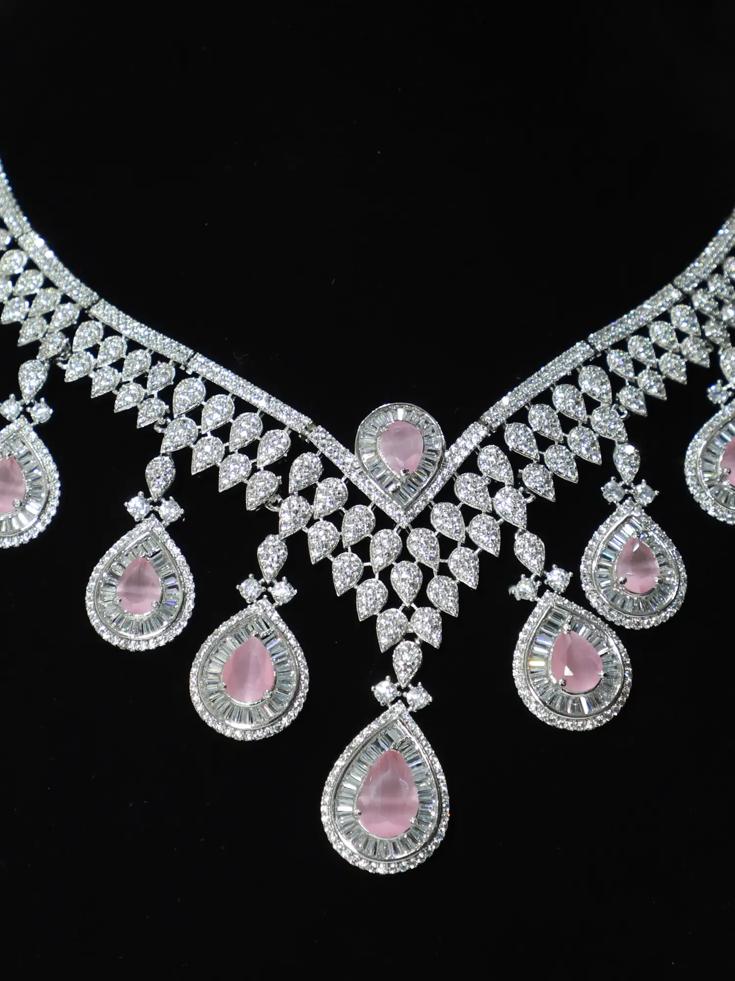 Beautiful Design Stone Studded American Diamond Necklace Set With Earrings