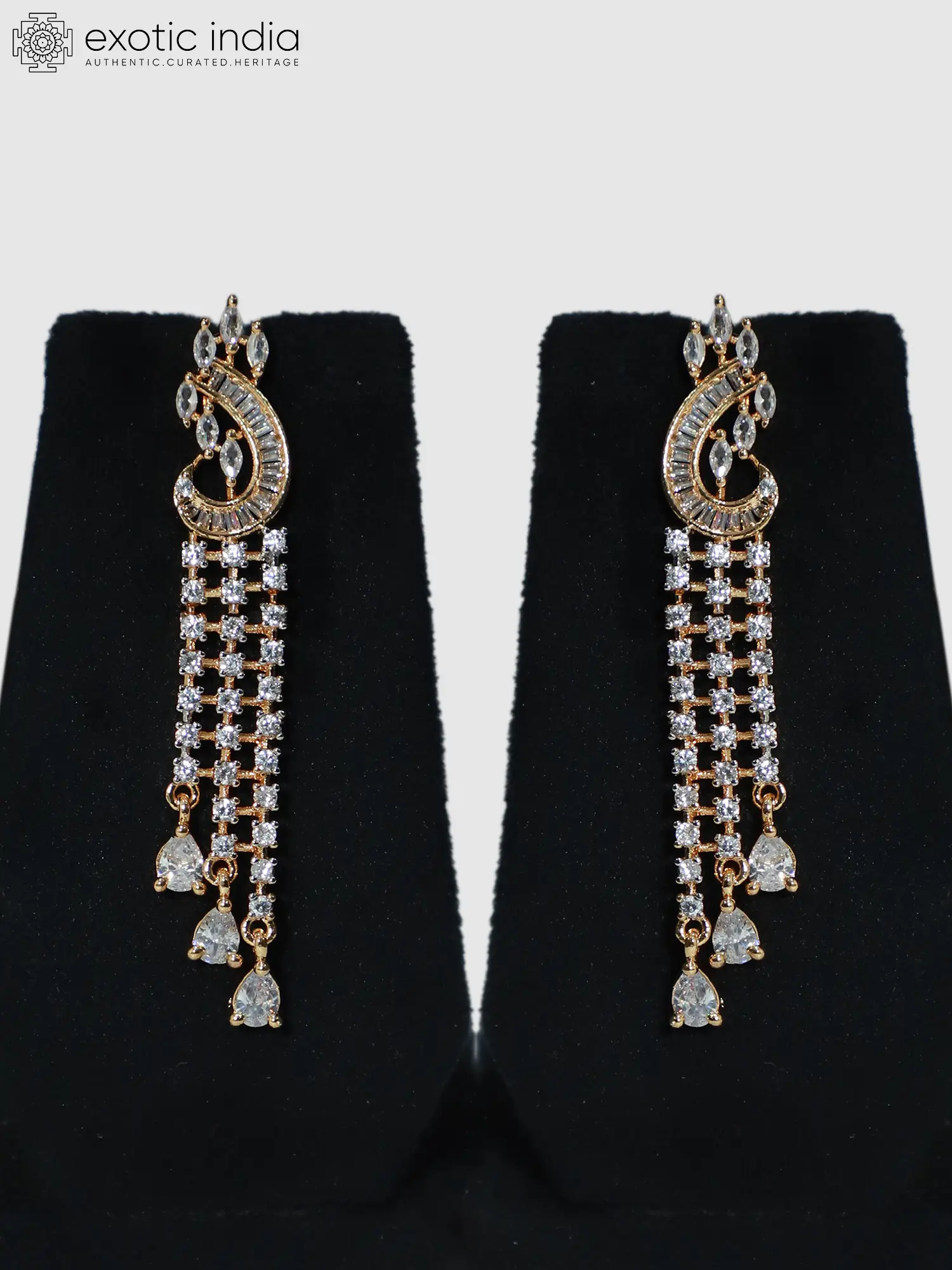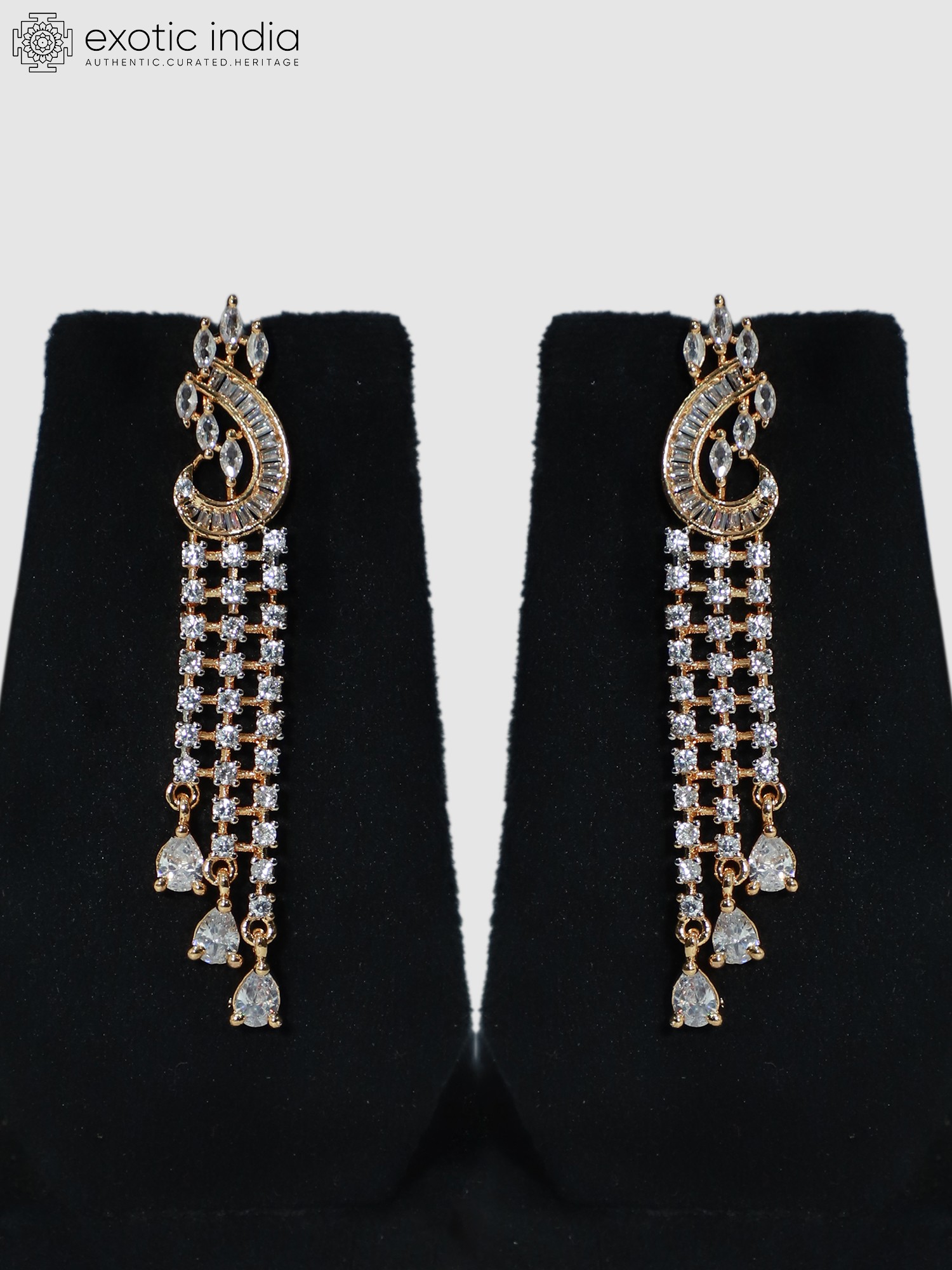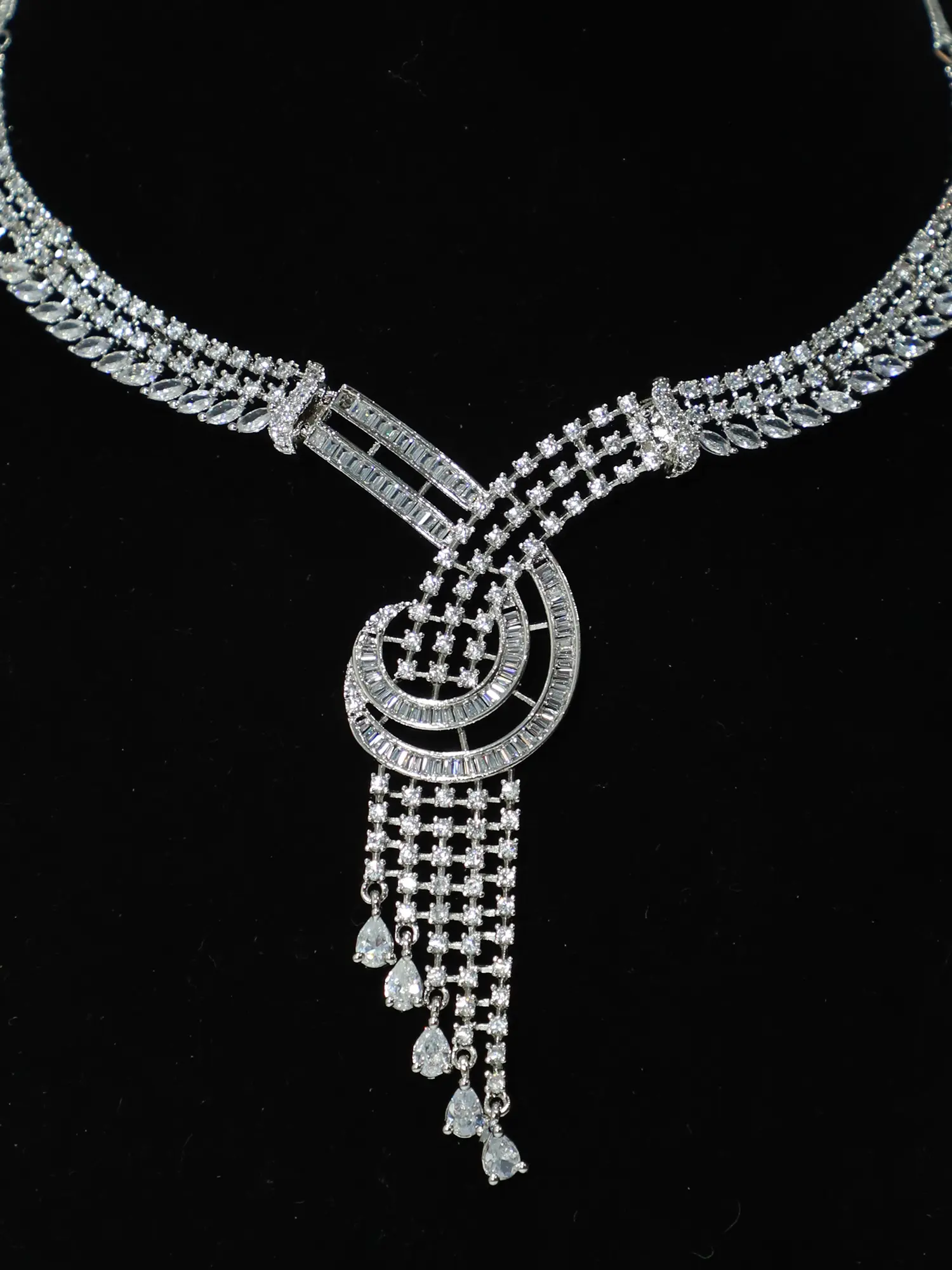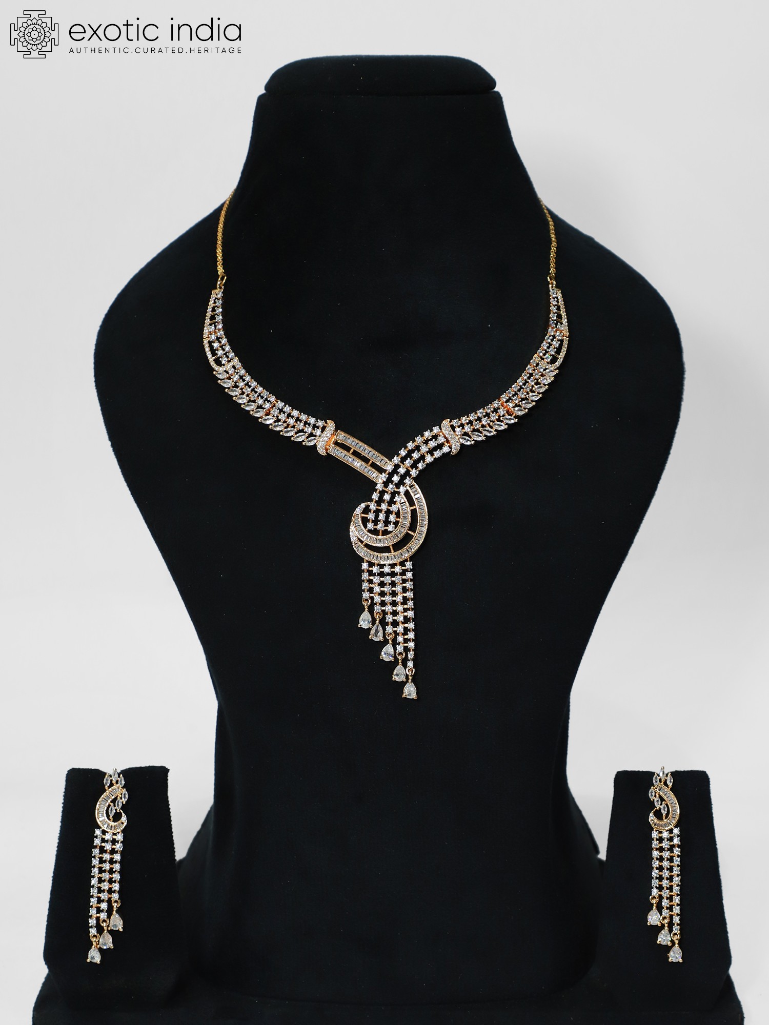 Floral Leaf Design Stone Studded American Diamond Necklace Set With Earrings