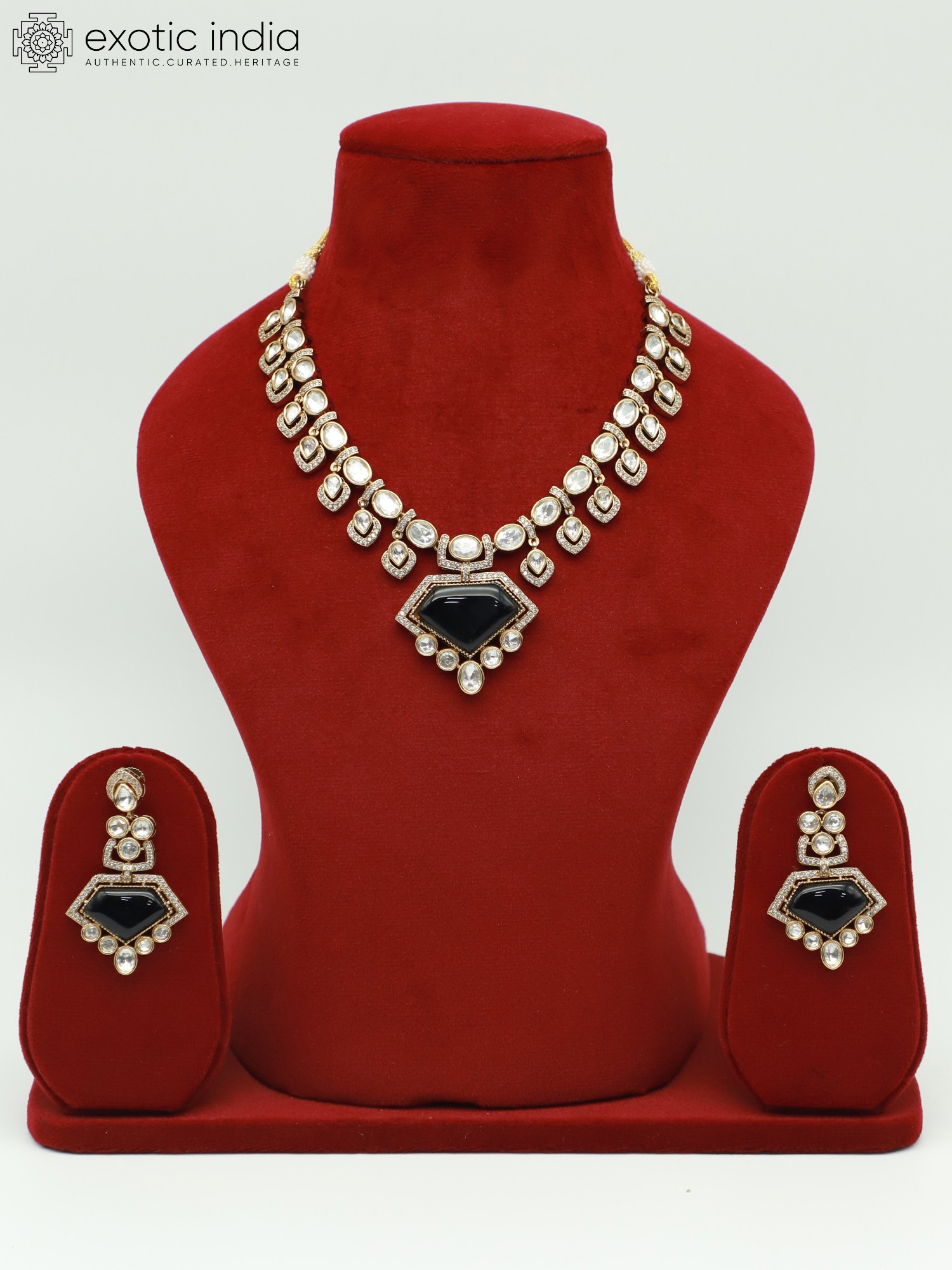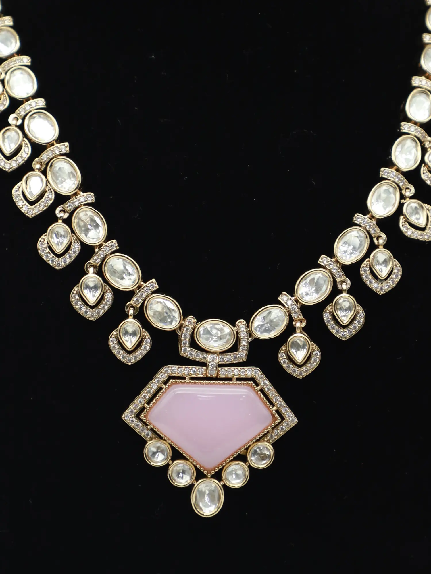 Beautiful Design Embellished Stone Studded American Diamond Necklace Set With Earrings