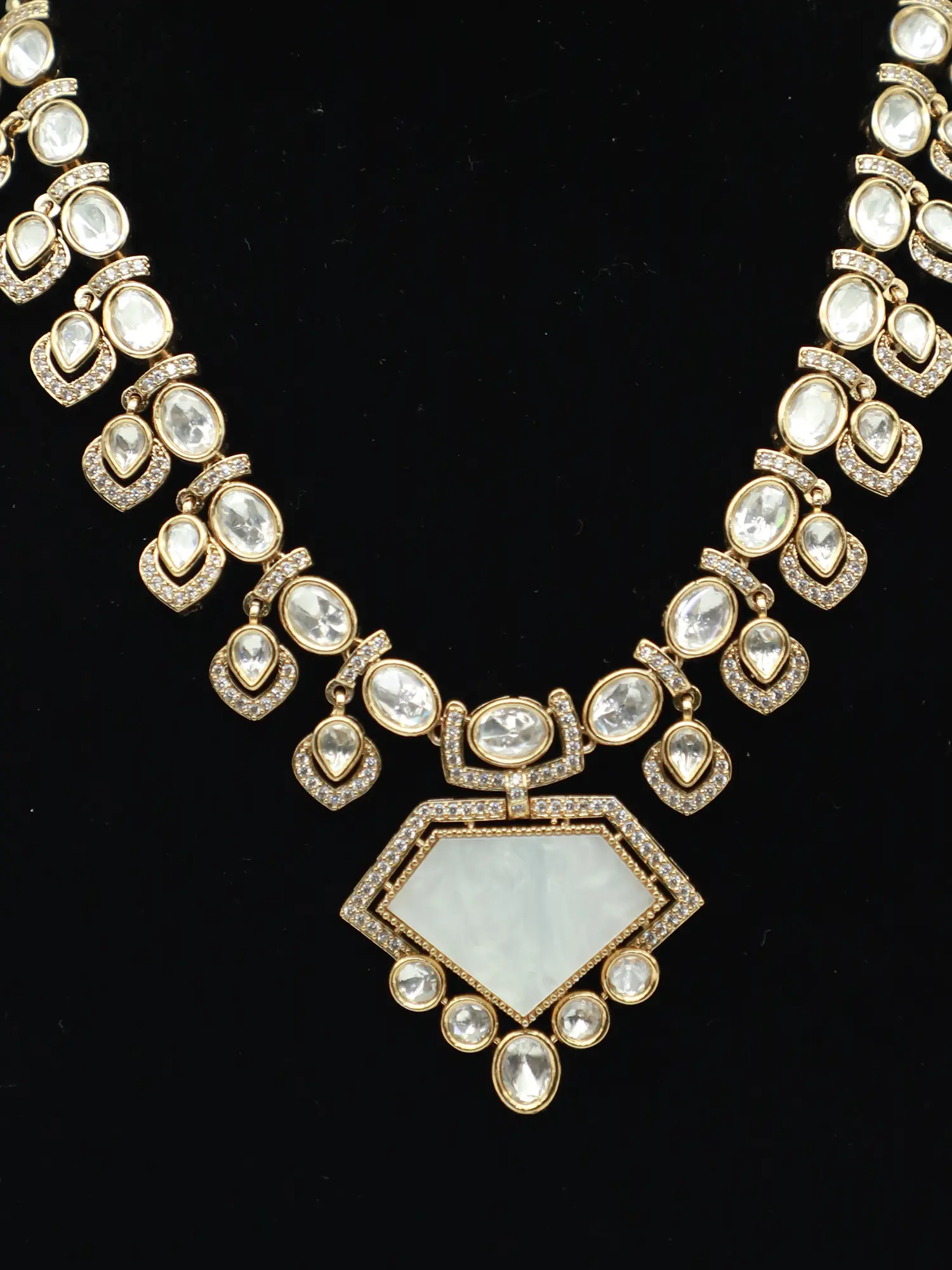 Beautiful Design Embellished Moissanite Kundan With Matt Polish Necklace With Earrings
