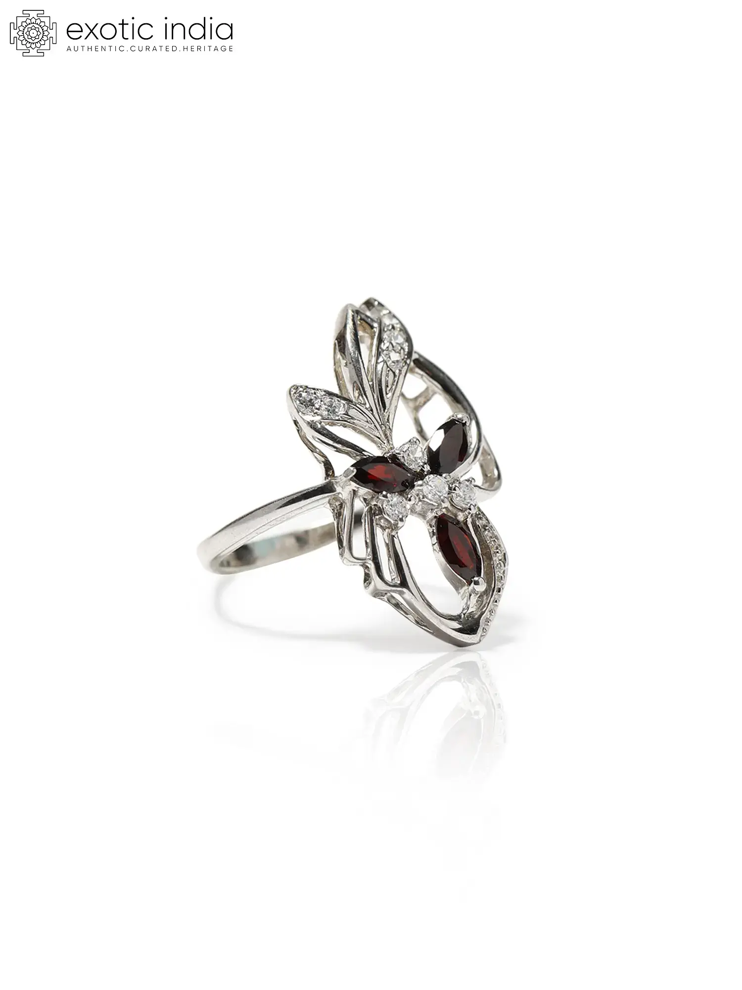 Round Cut Garnet Gemstone Ring with Cubic Zirconia