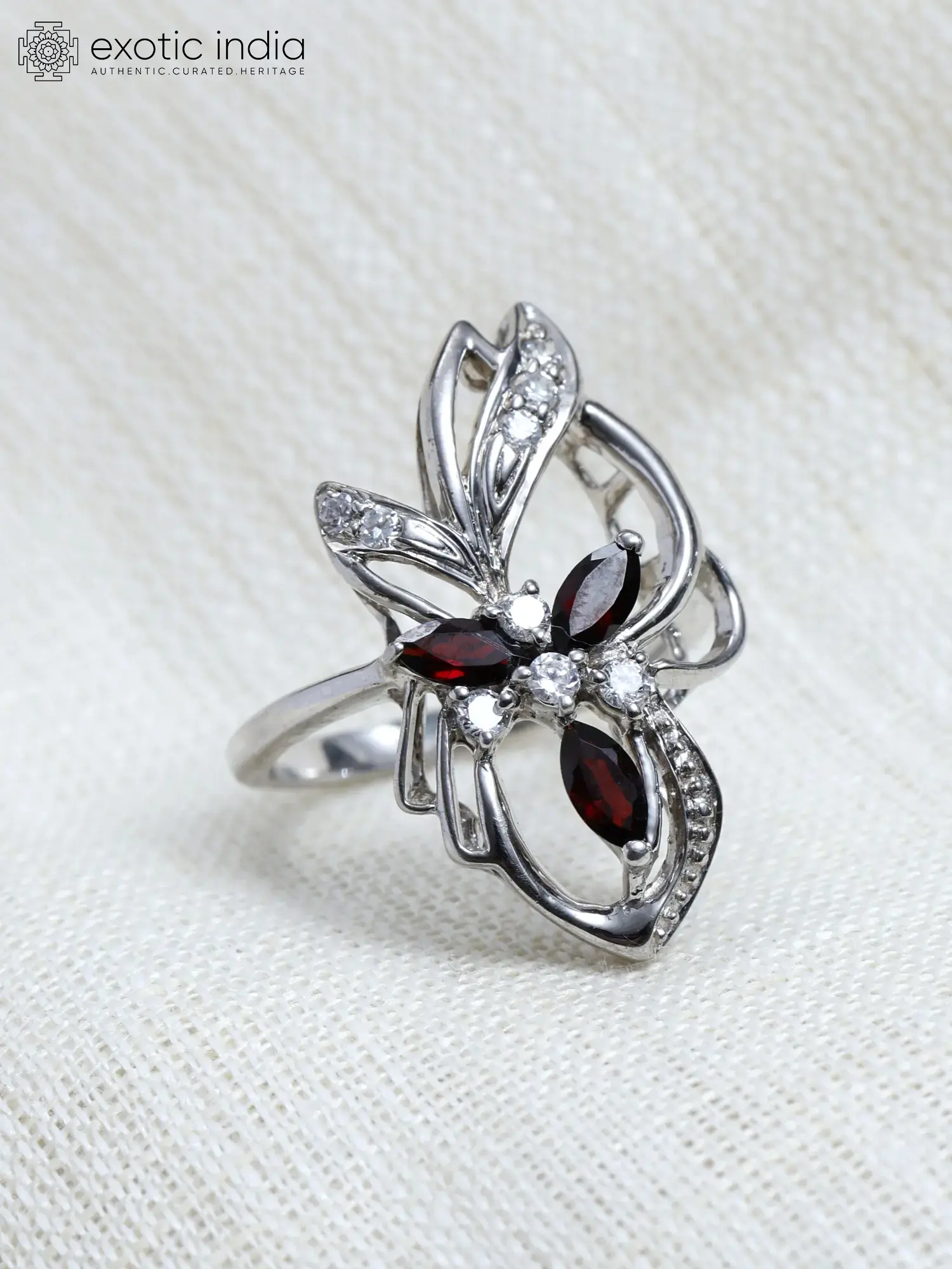 Sterling Silver Ring with Central Oval Garnet and Side Stones