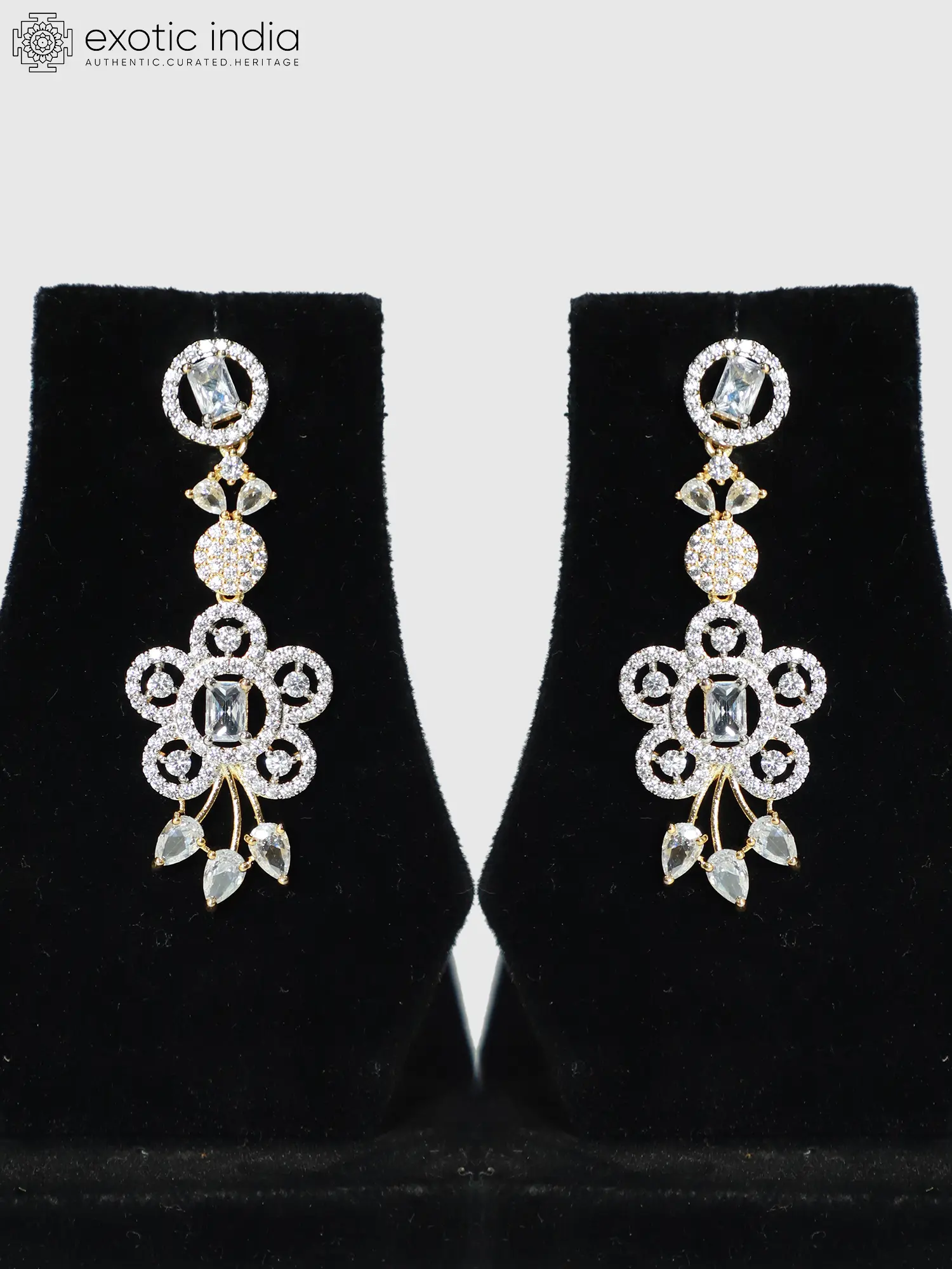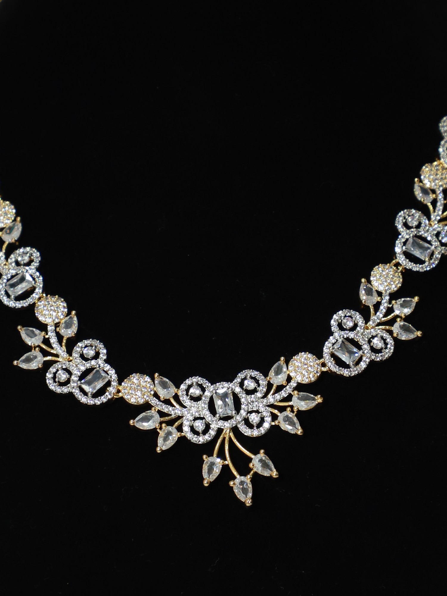 Gold-Tone Embellished Beautiful Design American Diamond Necklace Set With Earrings