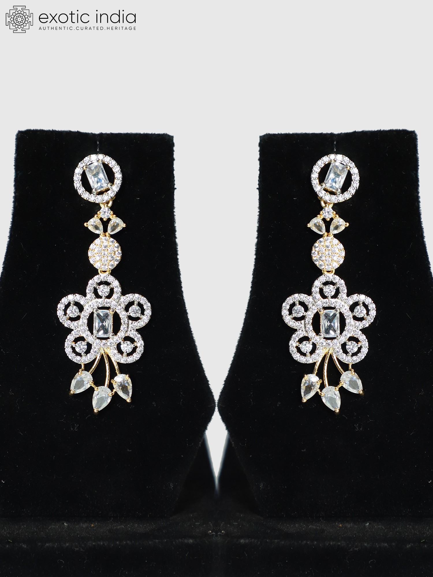 Designer Beautiful Embellished American Diamond Necklace Set With Earrings
