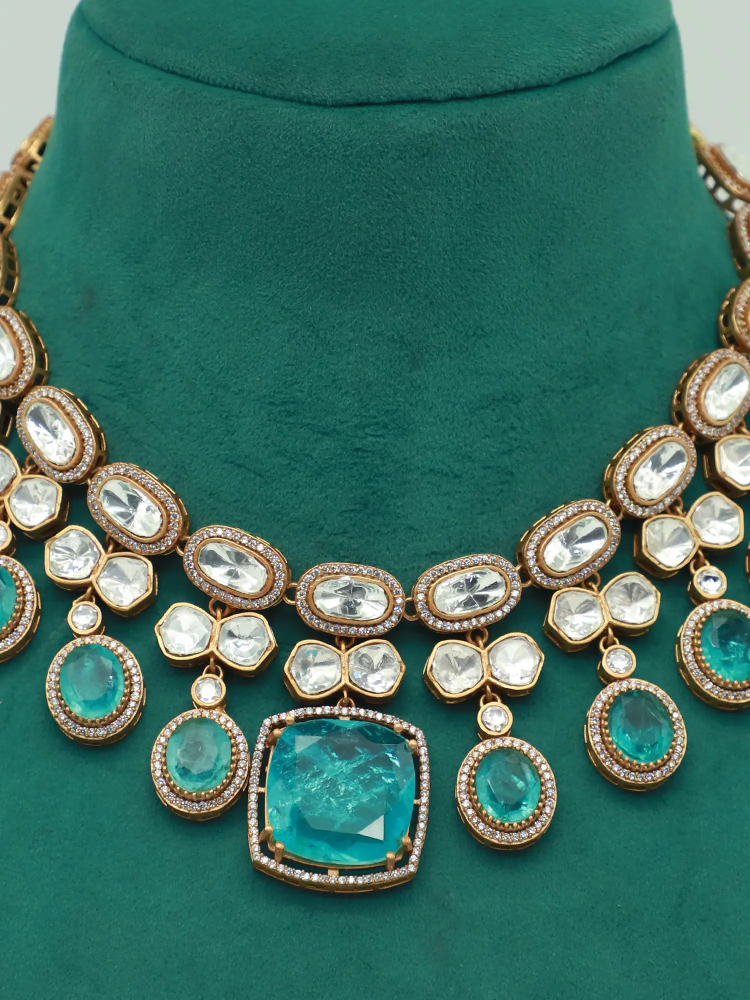 Monalisa With Moissanite Kundan Stone Studded Necklace Set With Earrings