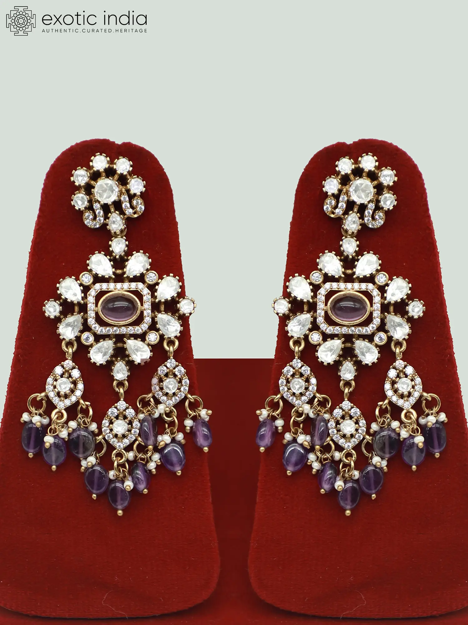 Monalisa With Moissanite Kundan Stone Studded Necklace Set With Earrings