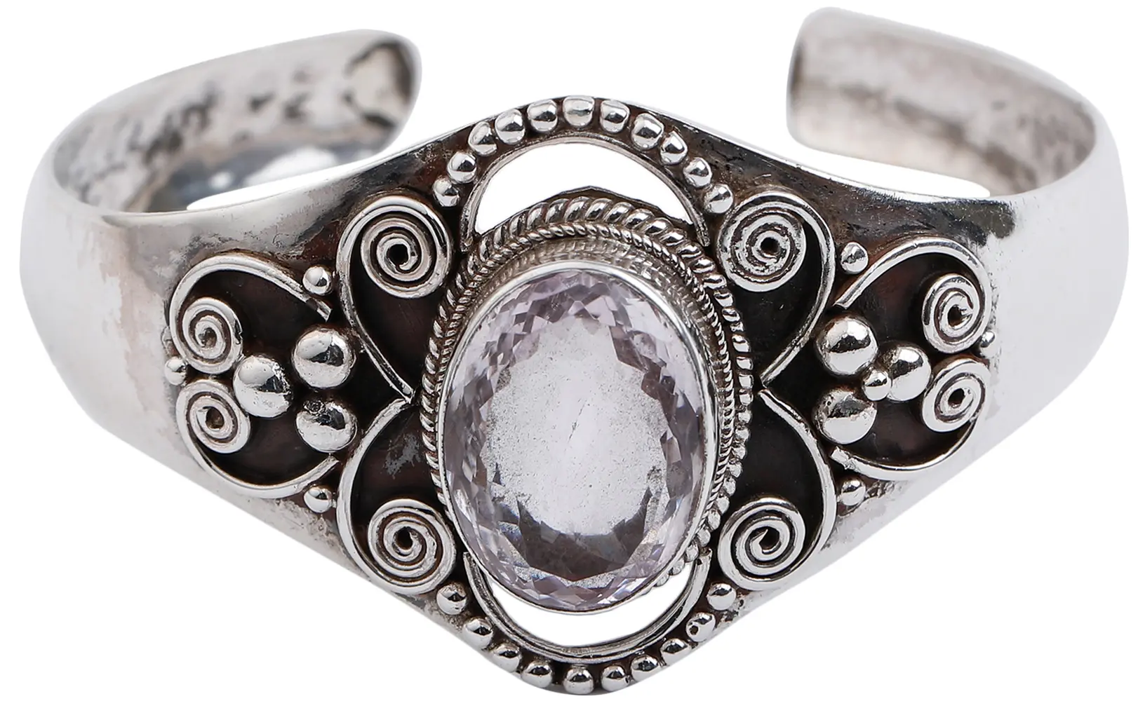 Sterling Silver Bracelet with Rutilated Quartz Detailing