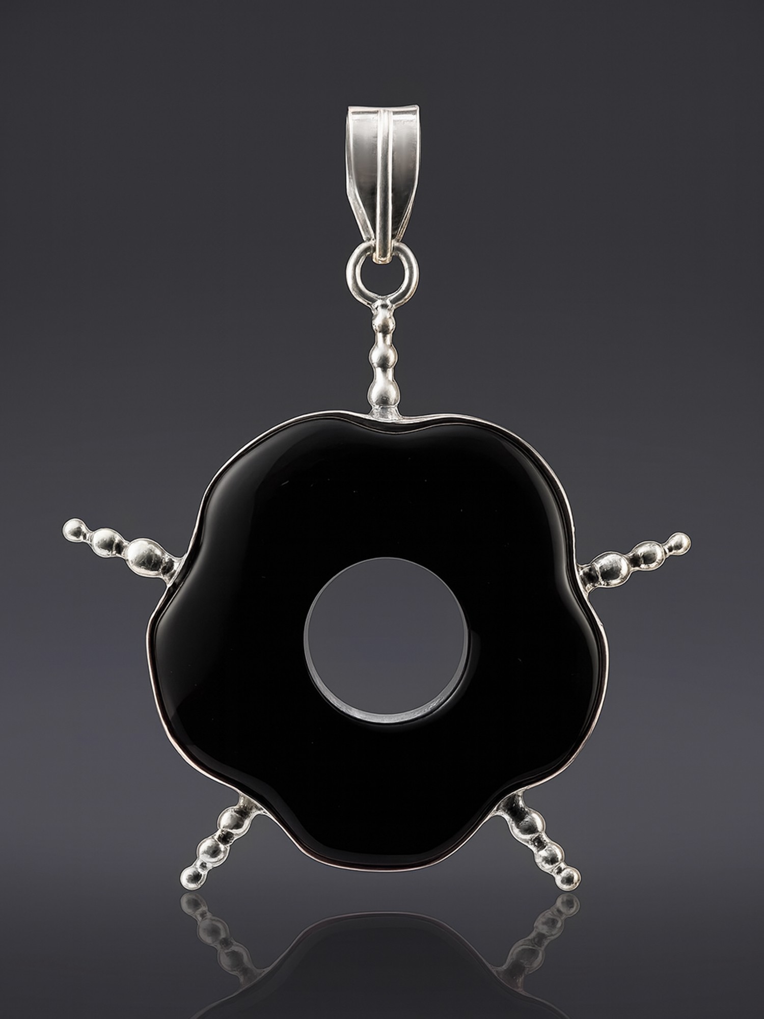 Black Onyx Donut Pendant with Spikes