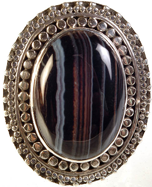 Silver Cuff Bracelet with Black Onyx (Adjustable Size)