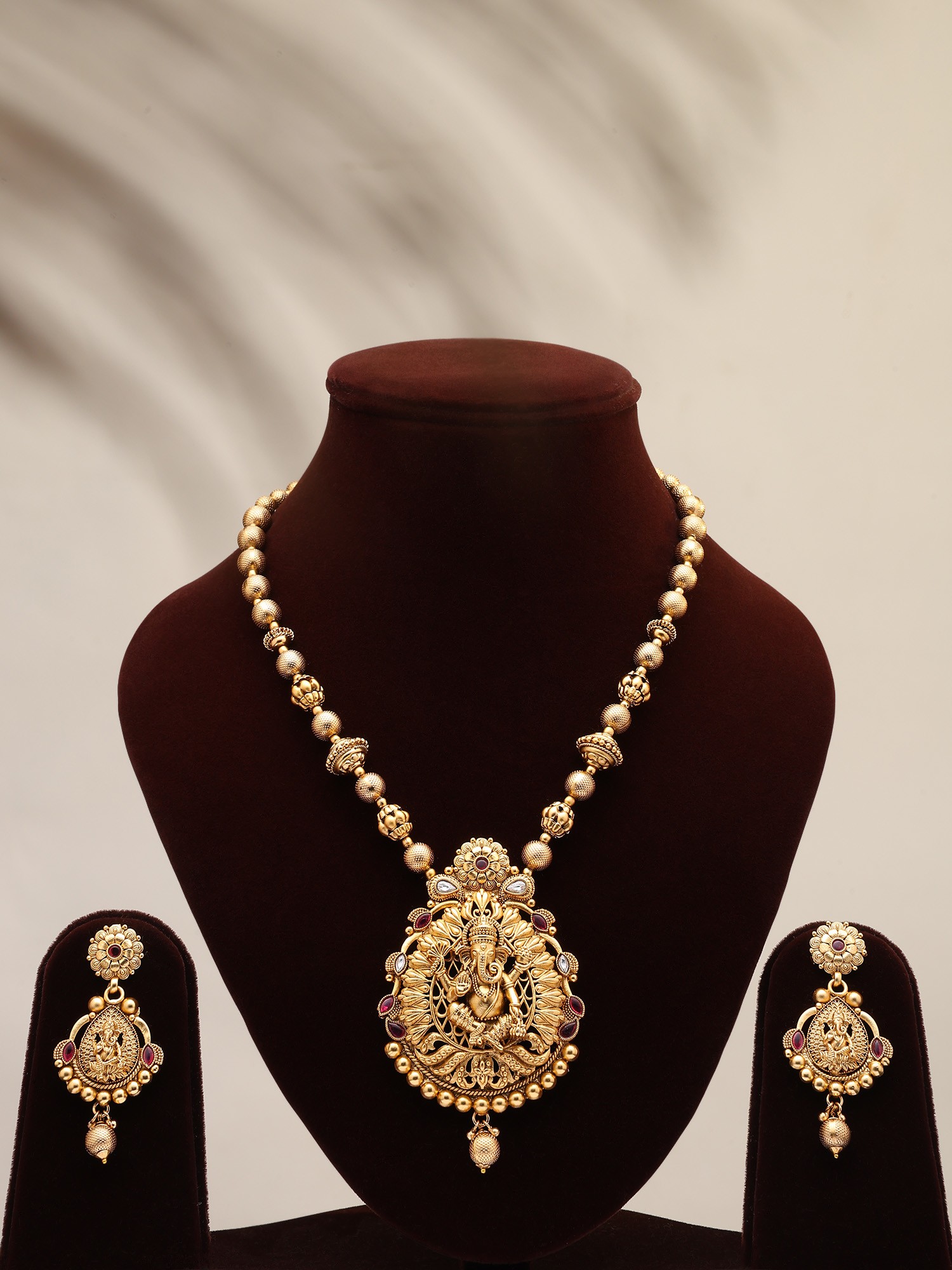Necklace : 2 Inch Height | Earrings - 2.5 Inch Height X 0.75 Inch Width | Mangtika - 5.5 Inch Length