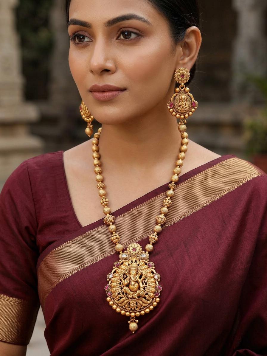 Lord Ganesha Long Necklace with Earrings Set