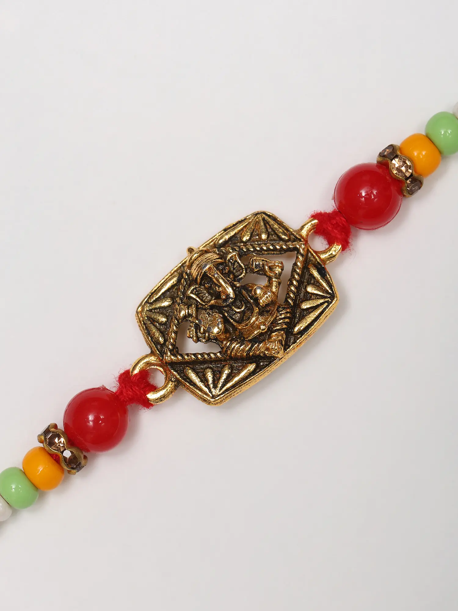 Floral Enamelled Rakhi with Kumkum and Akshat