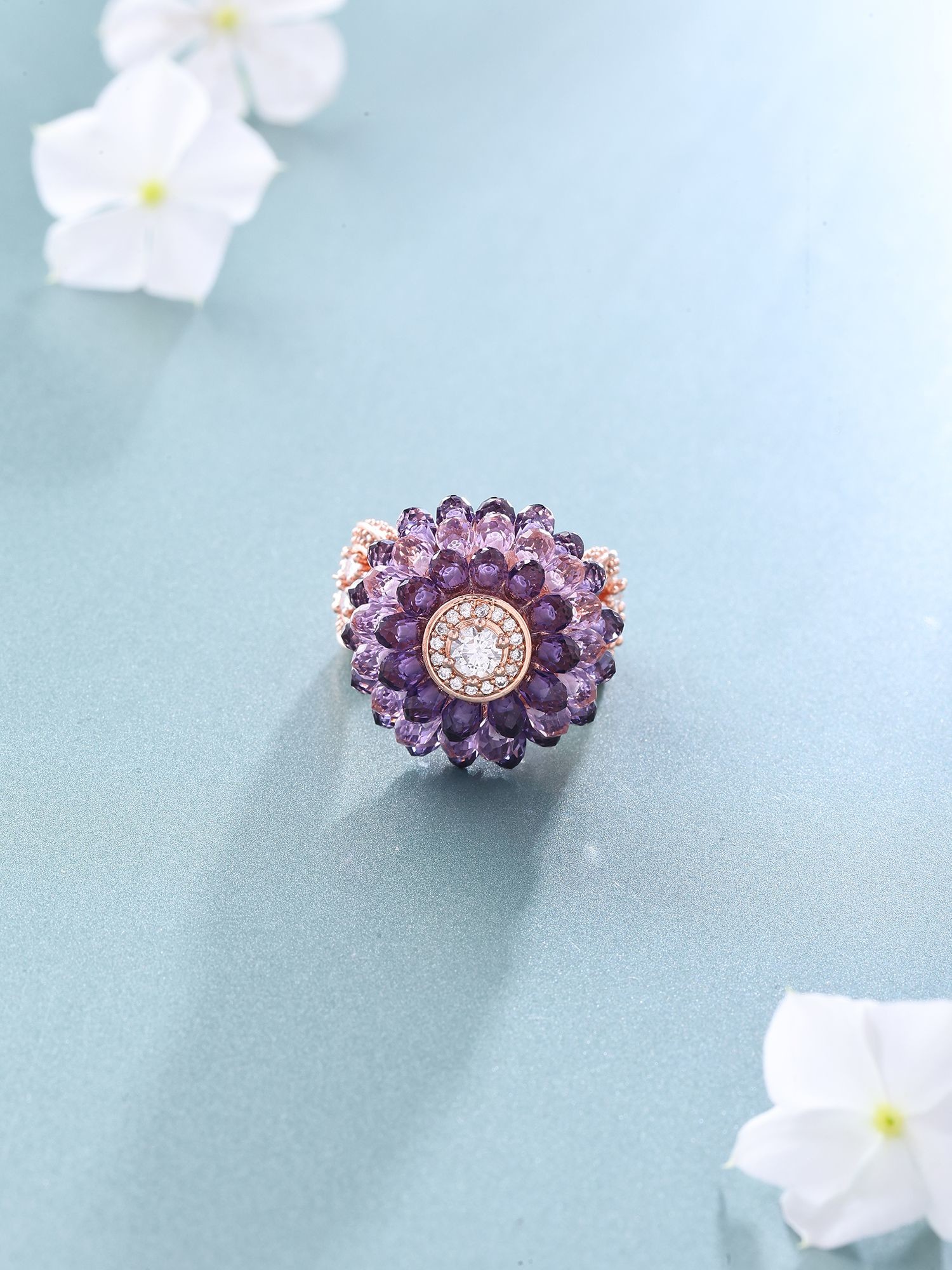 Blossom Floral American-Diamond Stone Studded Adjustable Ring