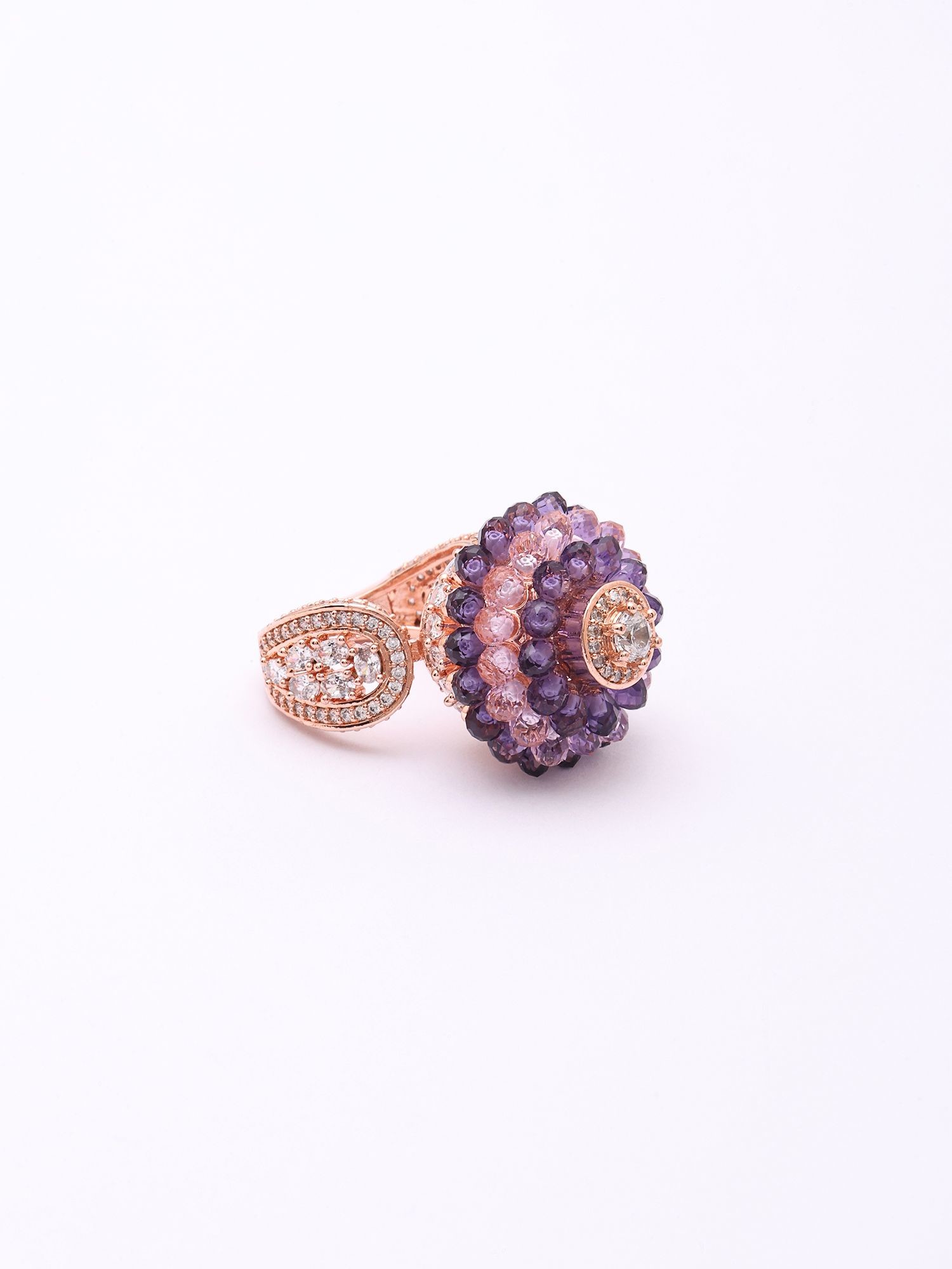 Pink Stone Studded Adjustable American-Diamond Statement Ring