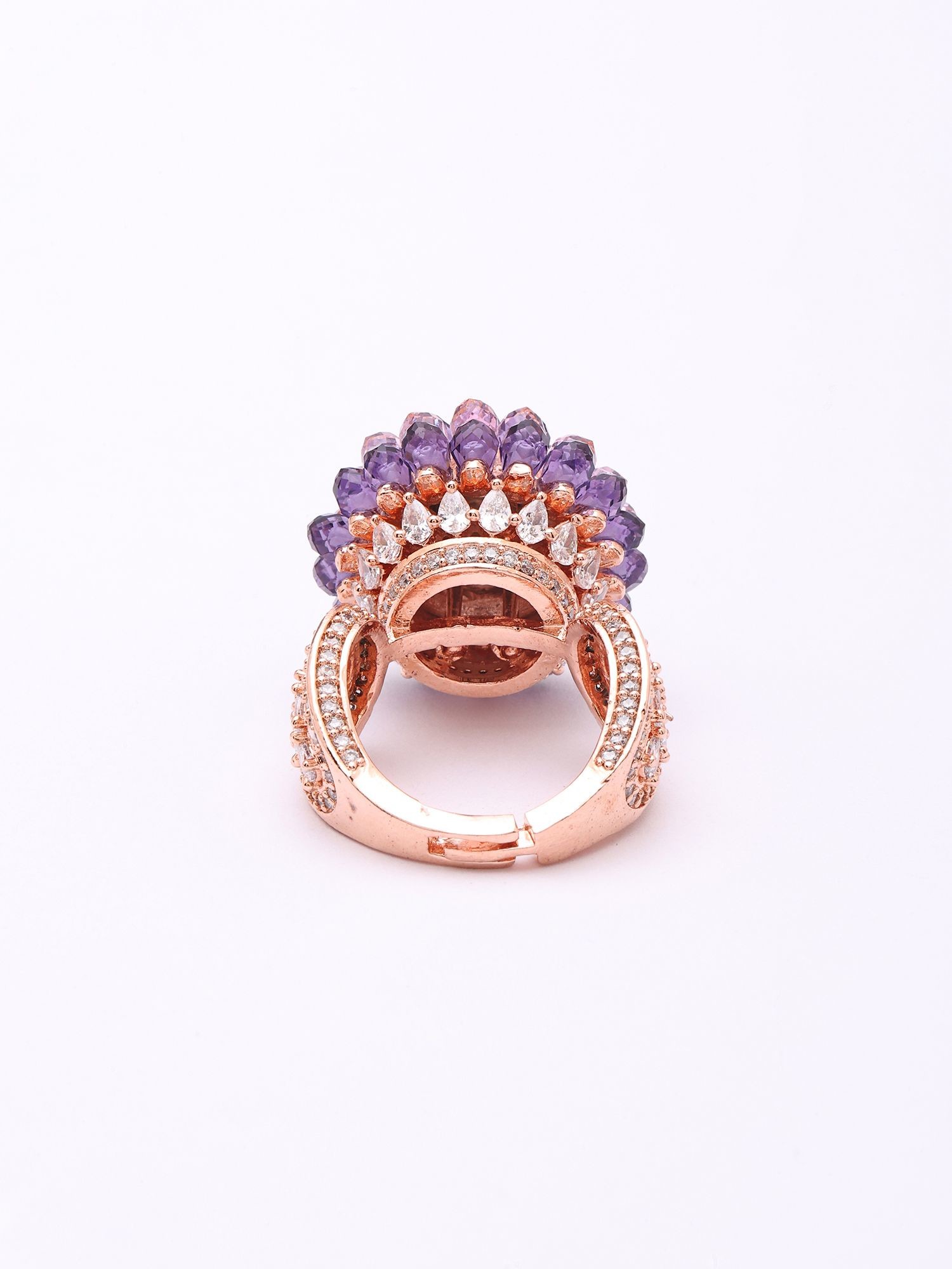 Blooming Petal Design Stone Studded American Diamond Adjustable Ring