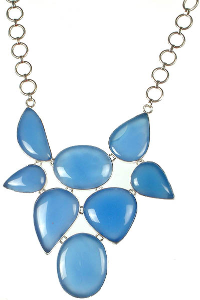 Blue Chalcedony is celebrated for its ability to absorb negativity and foster emotional harmony. It is a gem that resonates with the frequency of kindness, stimulating feelings of benevolence and the spirit of generosity. The wearers of this piece are graced not only with its calming aesthetic but also with the promise of a soothed heart and a nurtured spirit. This necklace is a whisper of peace and a touch of the celestial, a talisman for those who seek solace in the vastness of the blue above.