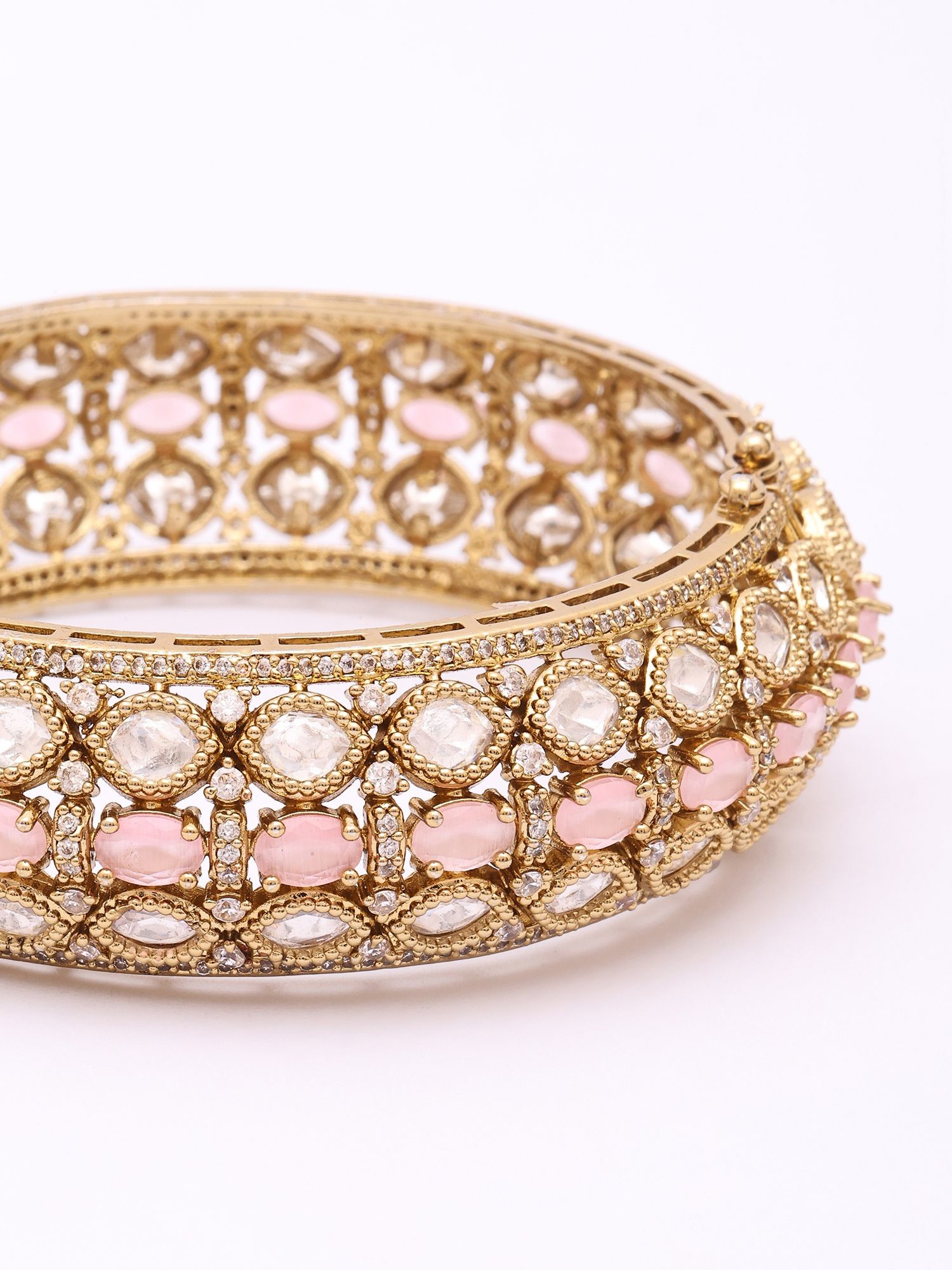 Designer Kada Bangles: Polki Style with Pink Stones