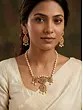 The earrings have a blend of modern and traditional appeal, which you style with the necklace or wear as a separate statement jewelry with your favorite Indo-western looks.