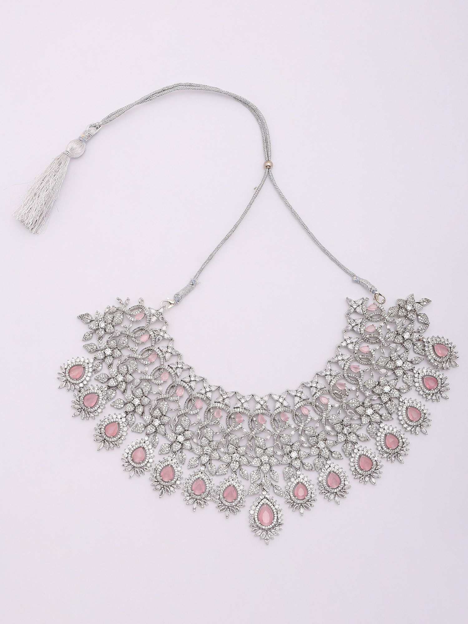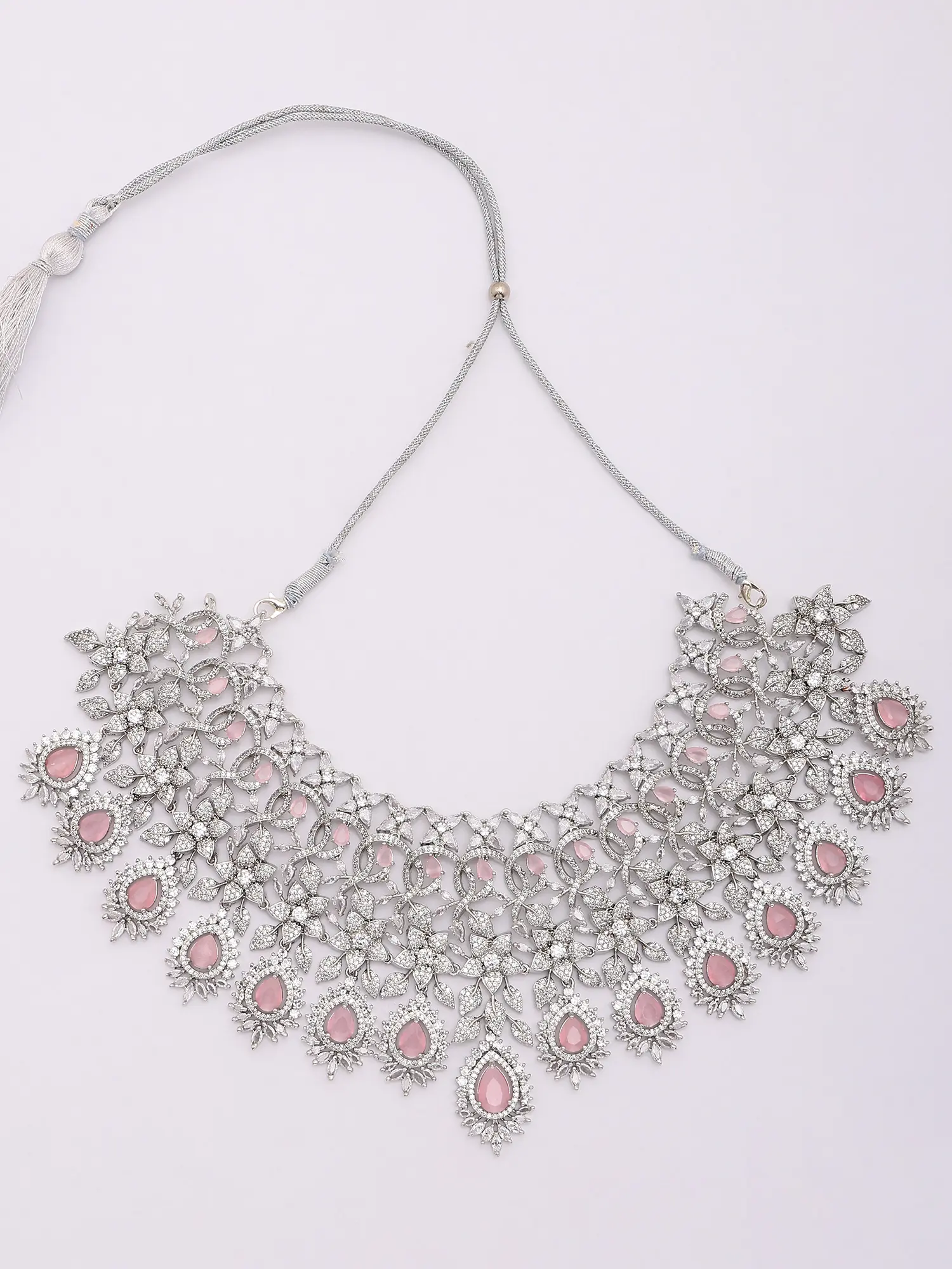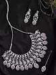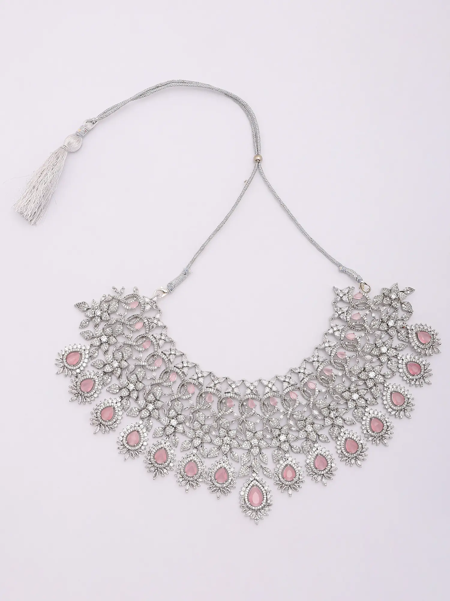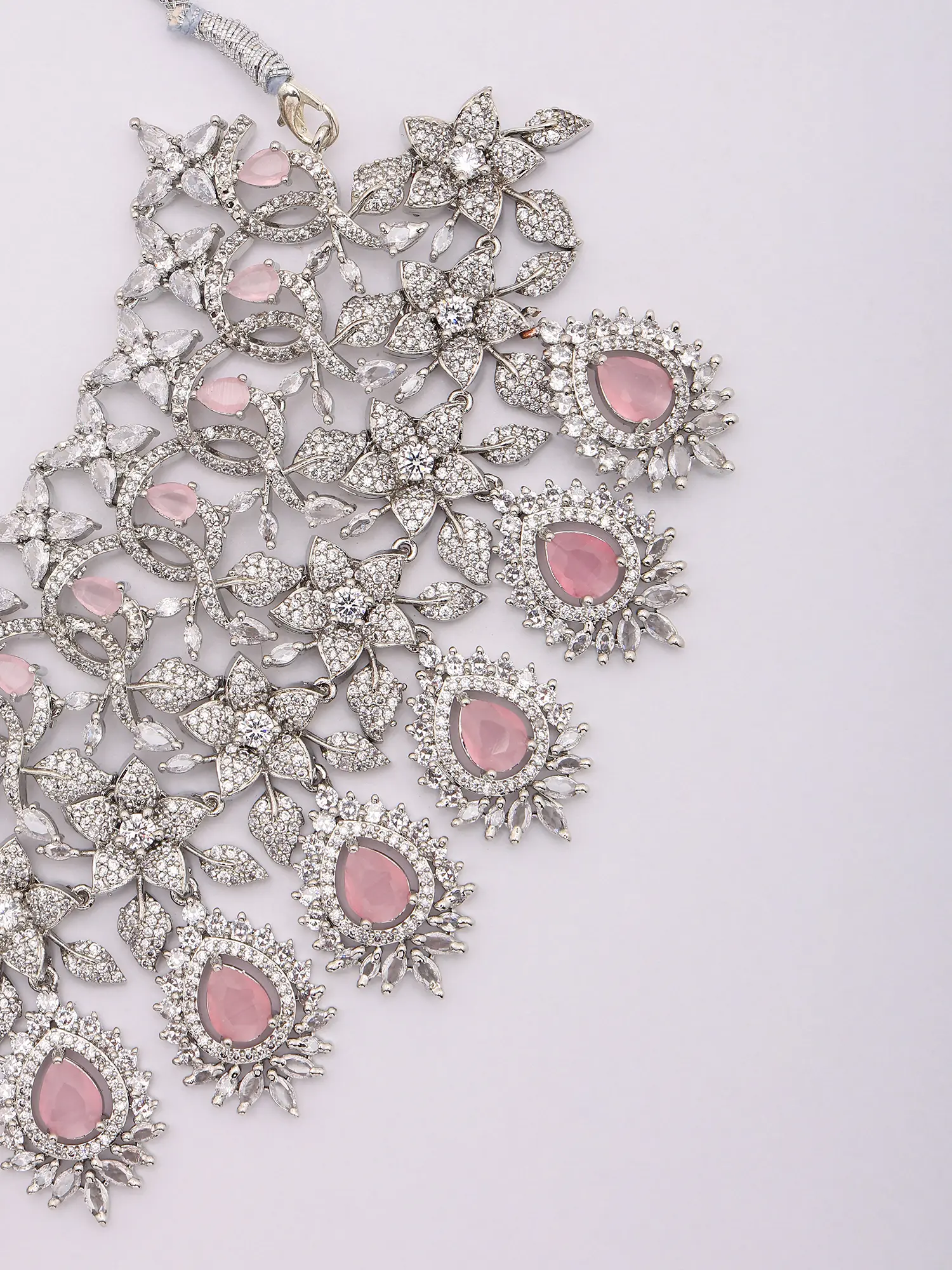 Statement Jewelry Set: Necklace, Earrings & Mangtika with Pink Stones