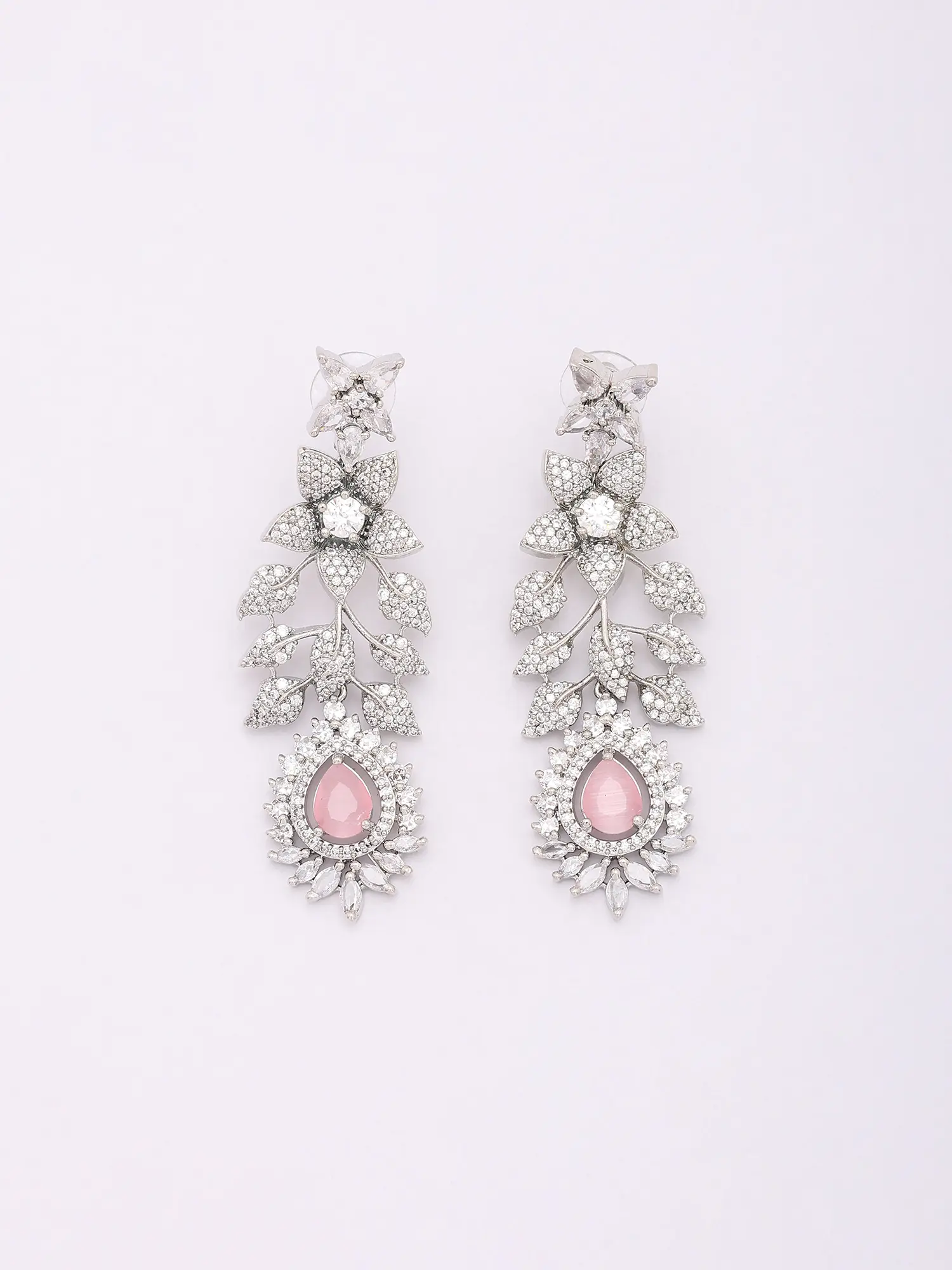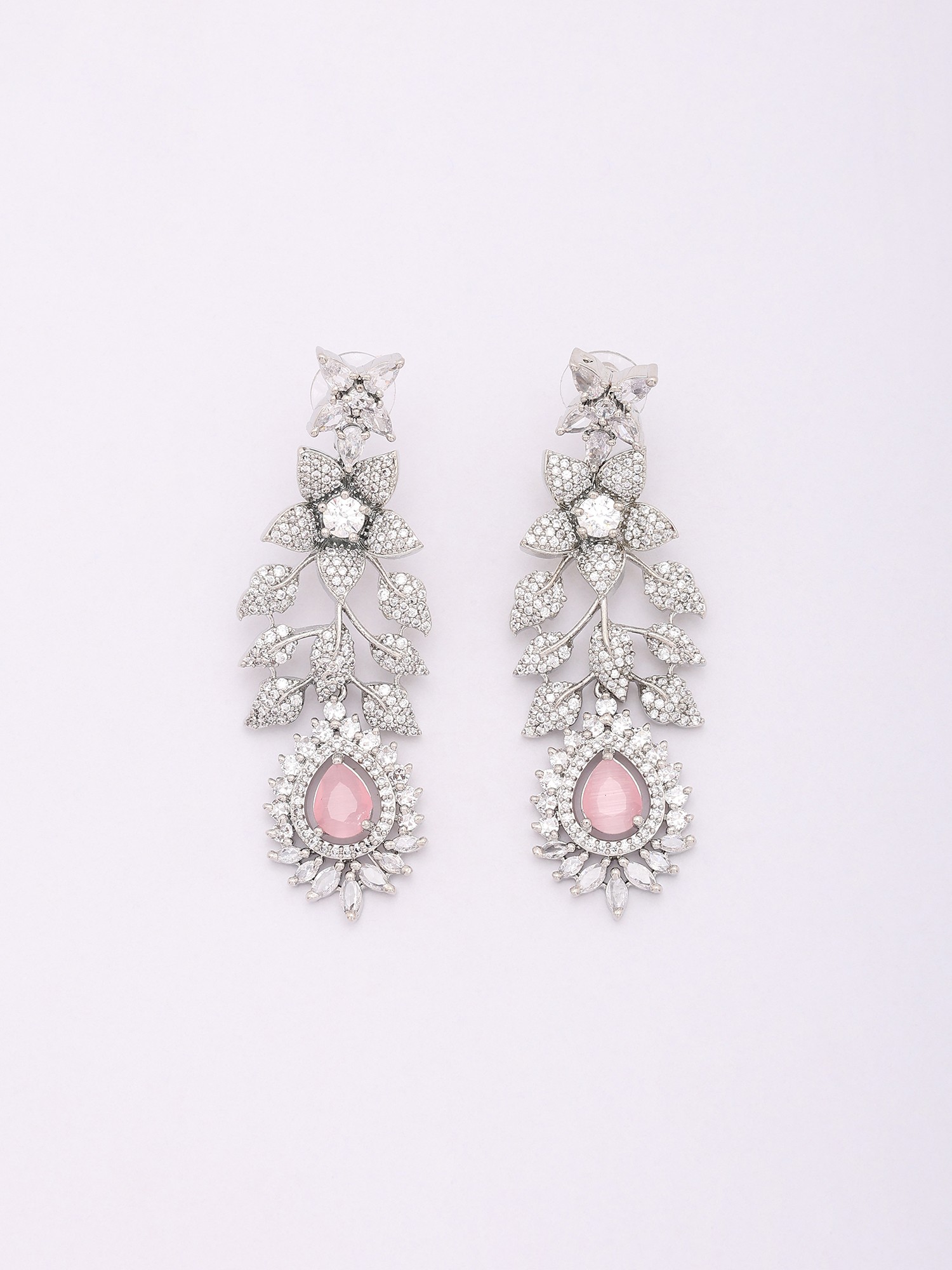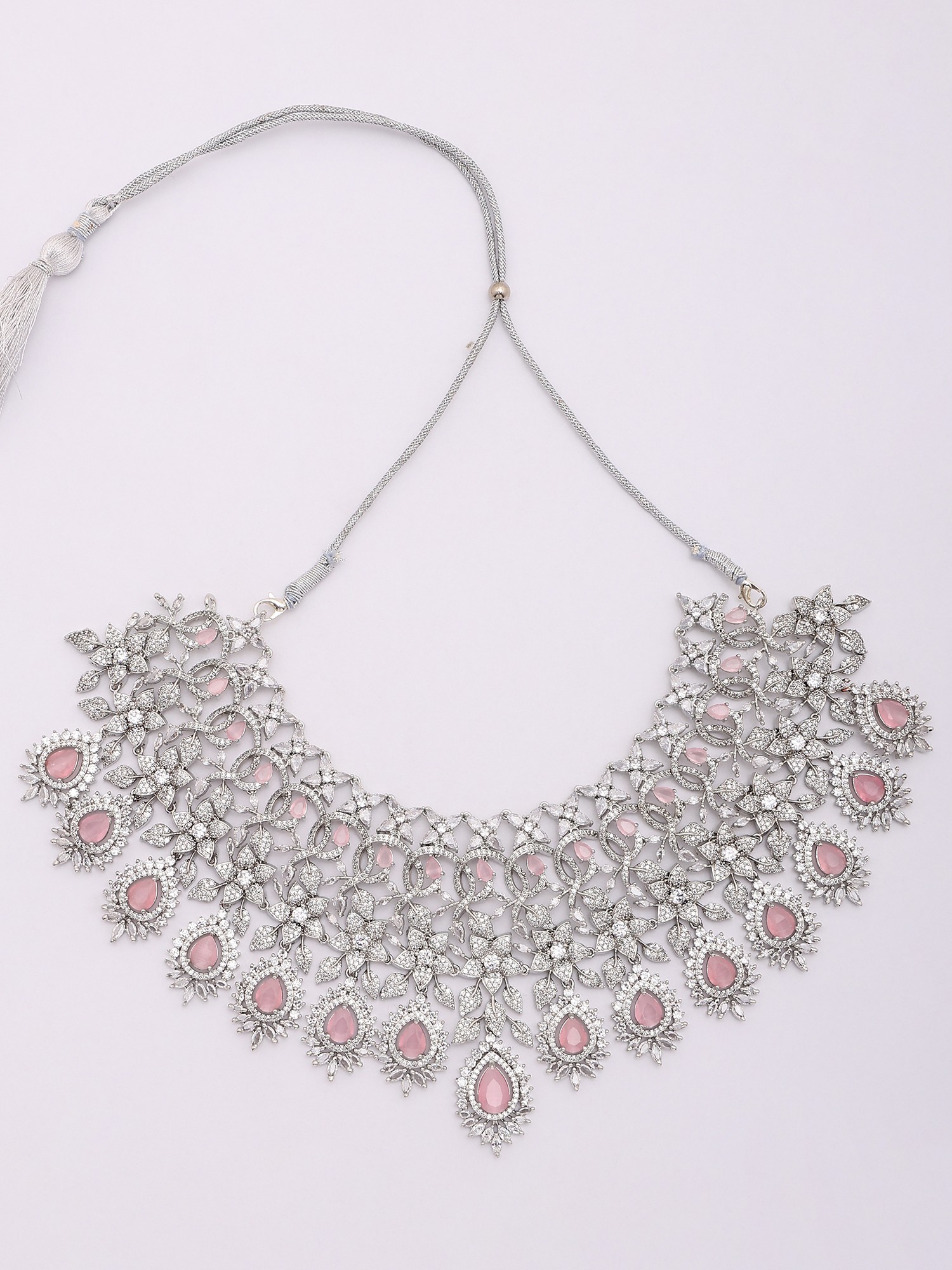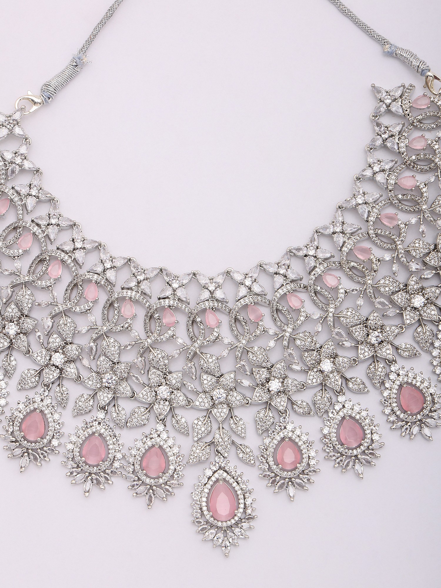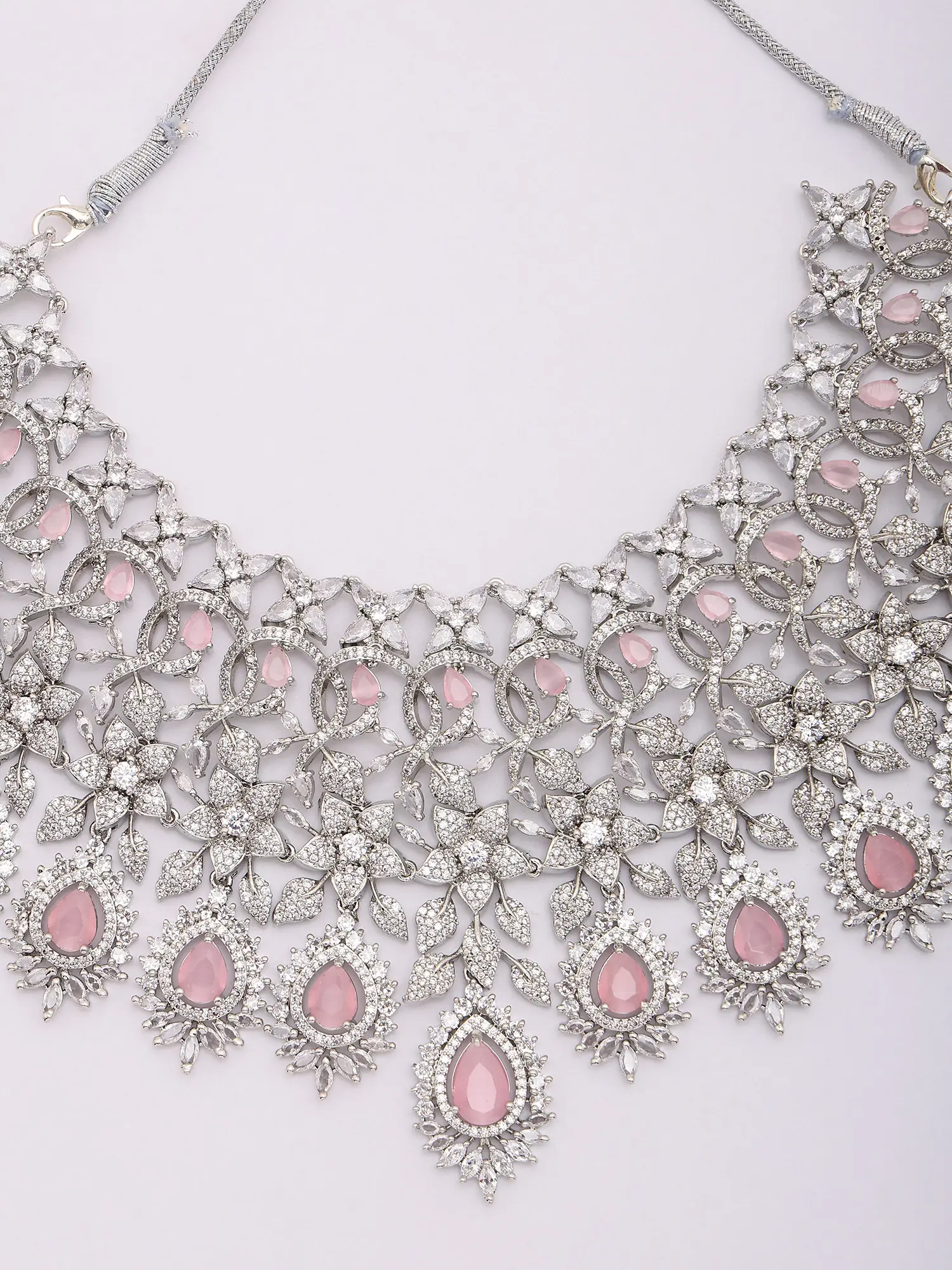 Teardrop American Diamond Bridal Necklace Set with Maang Tikka