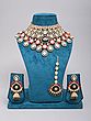 Geometric Design White Tie-Die Stone Studded Kundan Necklace Set with Earrings