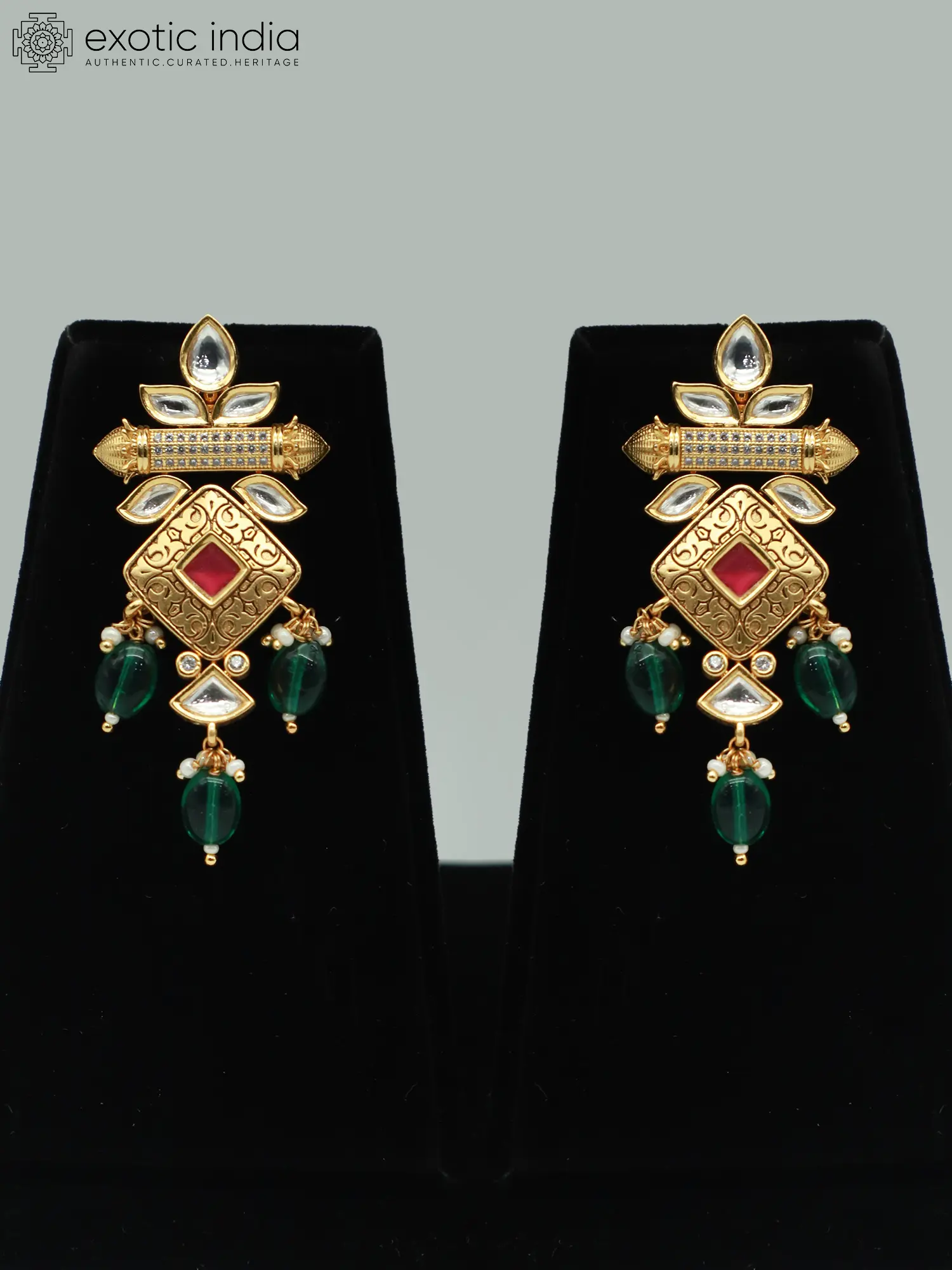 Embrace the allure of tradition with this exquisitely crafted jewelry set. It seamlessly blends classic design elements with a touch of modern sophistication, making it the perfect complement to both bridal and festive attire. The artistry behind this set speaks volumes, showcasing a dedication to detail and a passion for creating pieces that resonate with elegance and grace. The design features intricate meenakari work, a traditional Indian art form that involves coloring and ornamenting metal surfaces with vibrant pigments. This adds a rich, textural dimension to the piece, making it visually captivating. The matte finish lends a subtle, understated sheen, preventing the piece from appearing overly ostentatious and allowing the details of the craftsmanship to truly shine.