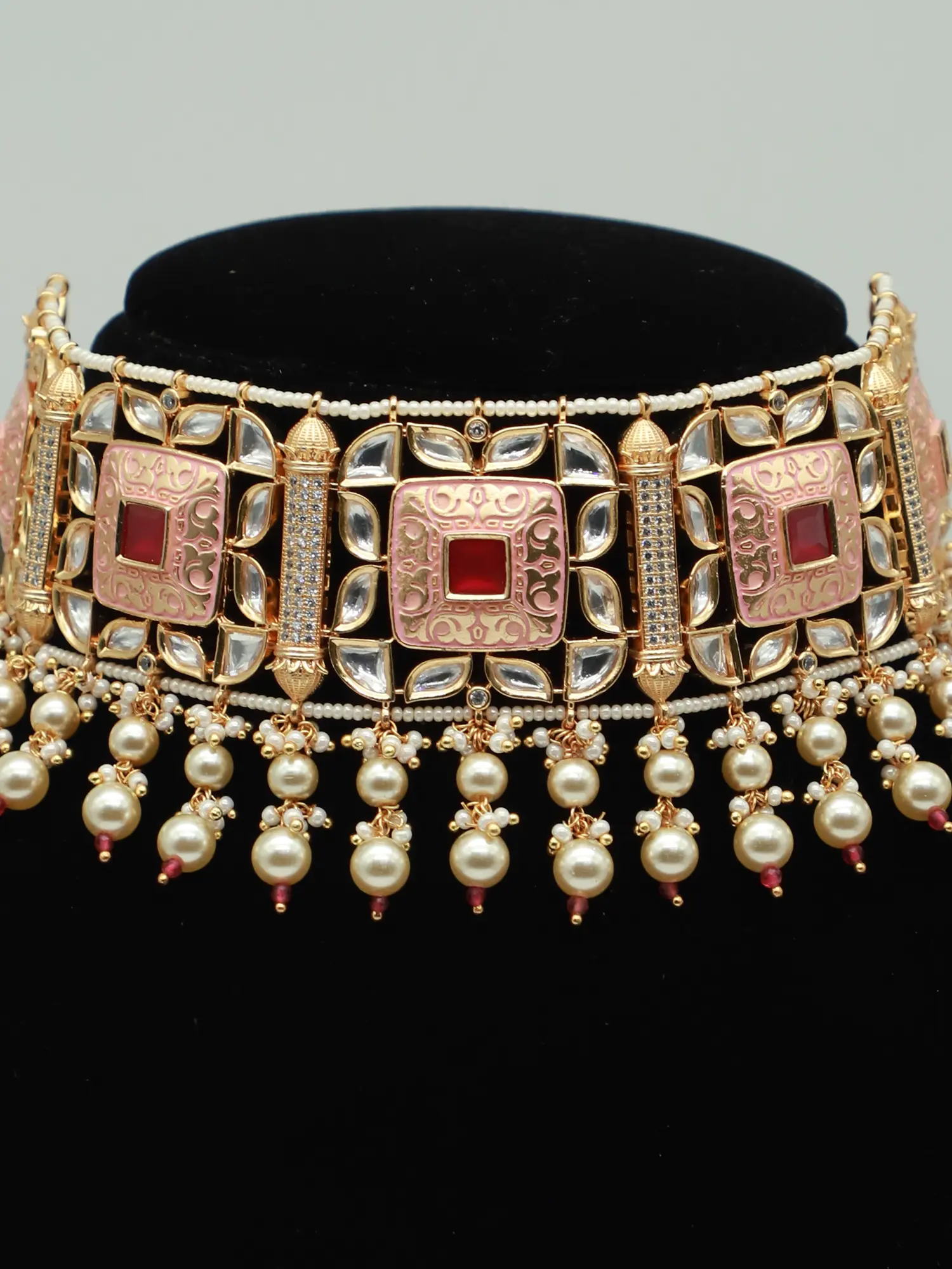 Bridal Choker Set With Meenakari Matte Design And Beads