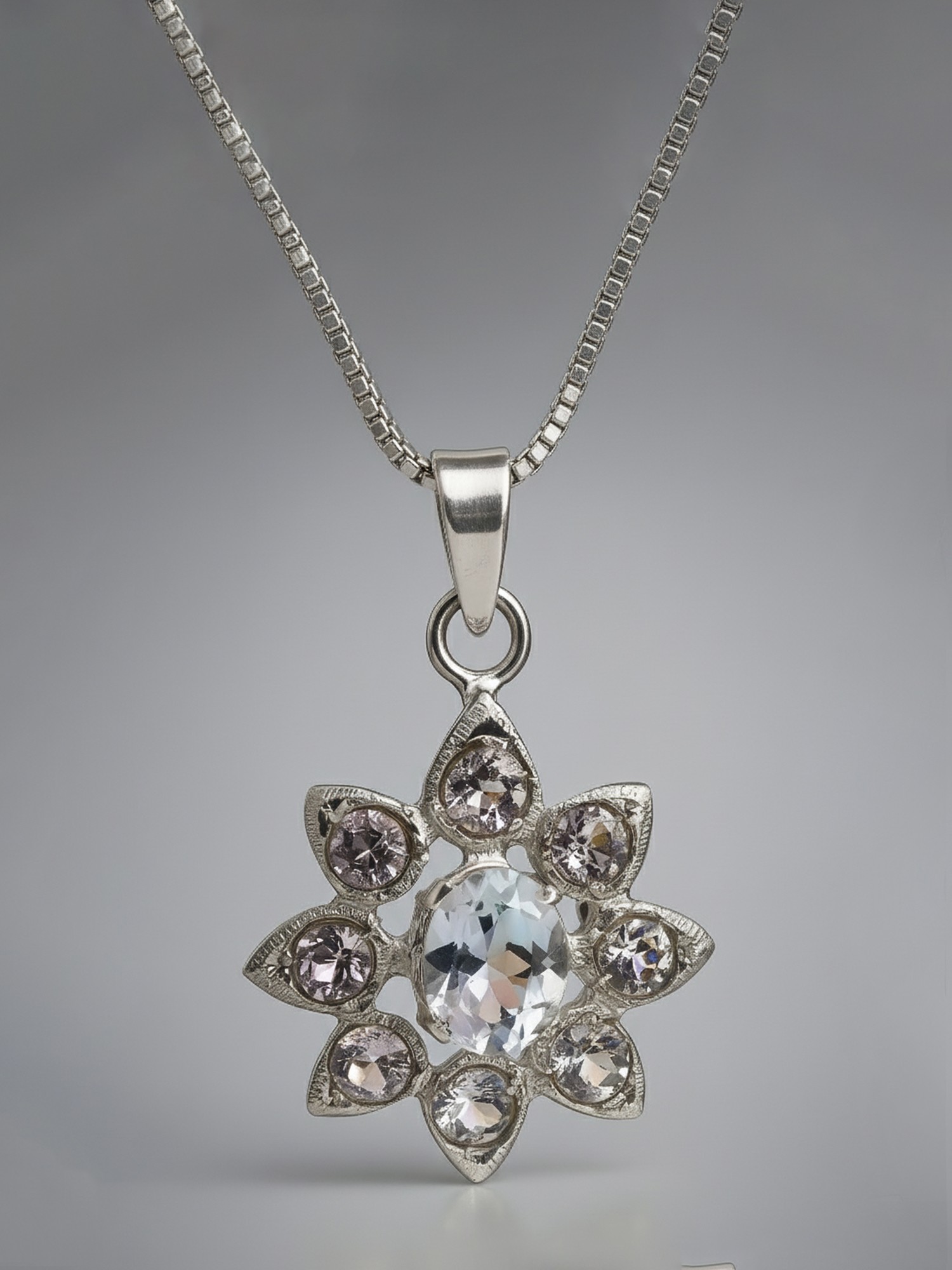 Fine Cut Blue Topaz Pendant & Earrings Set