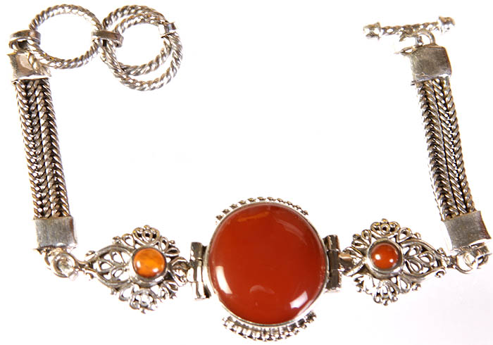 Sterling Silver Bracelet with Crystal and Carnelian Gemstone
