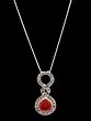 Features a striking, teardrop-shaped carnelian cabochon in a rich red hue.