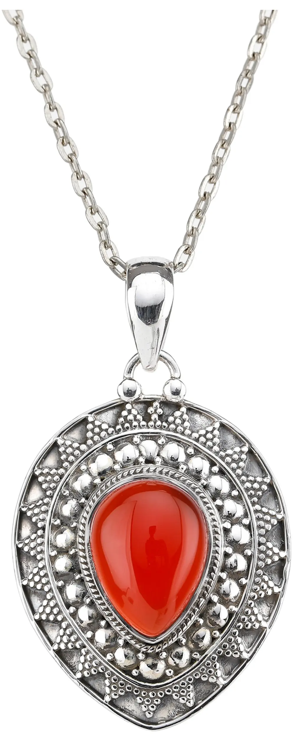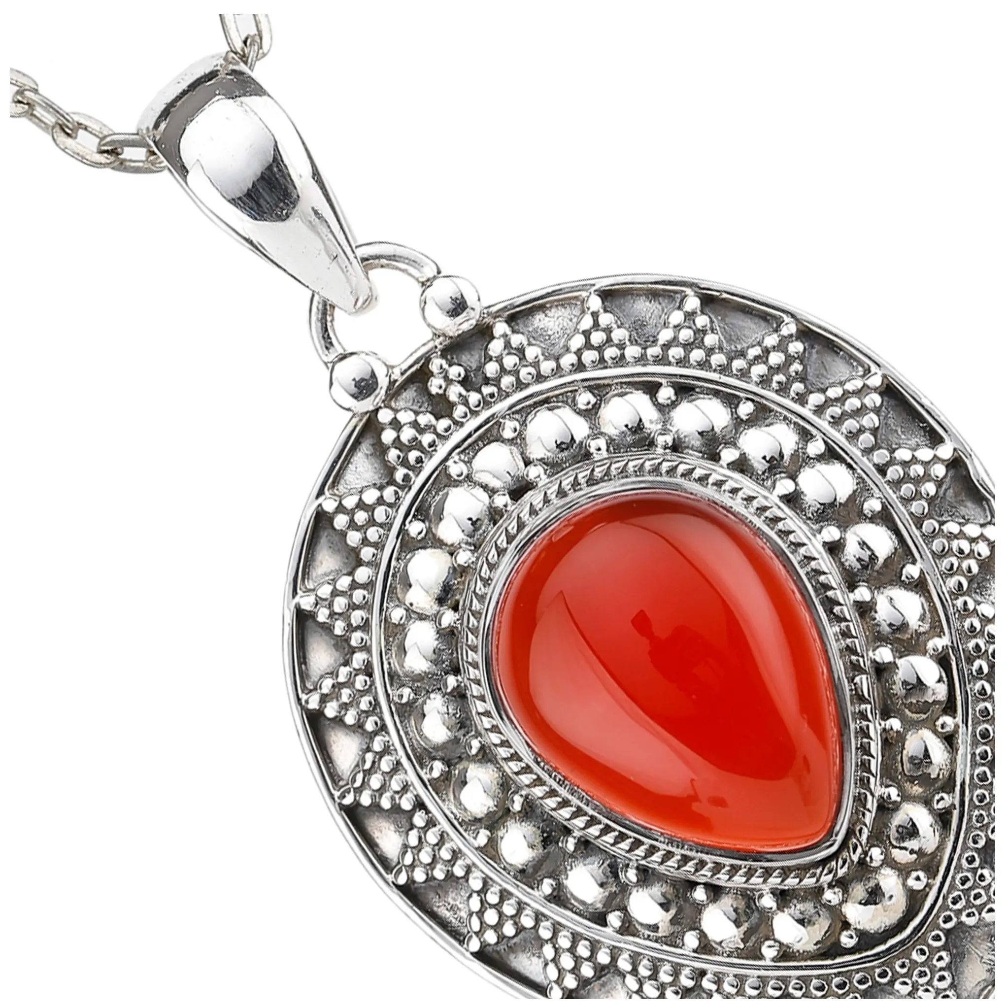 Sterling Silver Pendant with Oval Carnelian Agate Stone
