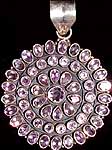 The creation of this pendant is a testament to the skills of expert artisans. Each piece is painstakingly handcrafted, ensuring that no two are exactly alike. The sterling silver is shaped with precision, and the amethysts are carefully set to maximize their natural sparkle. This dedication to detail elevates the pendant beyond a simple piece of jewelry and turns it into a wearable work of art. The subtle variations in each pendant serve as a reminder of the human touch that goes into its creation, making it a unique and special item to own. The use of traditional techniques combined with modern design sensibilities results in a piece that is both classic and contemporary.