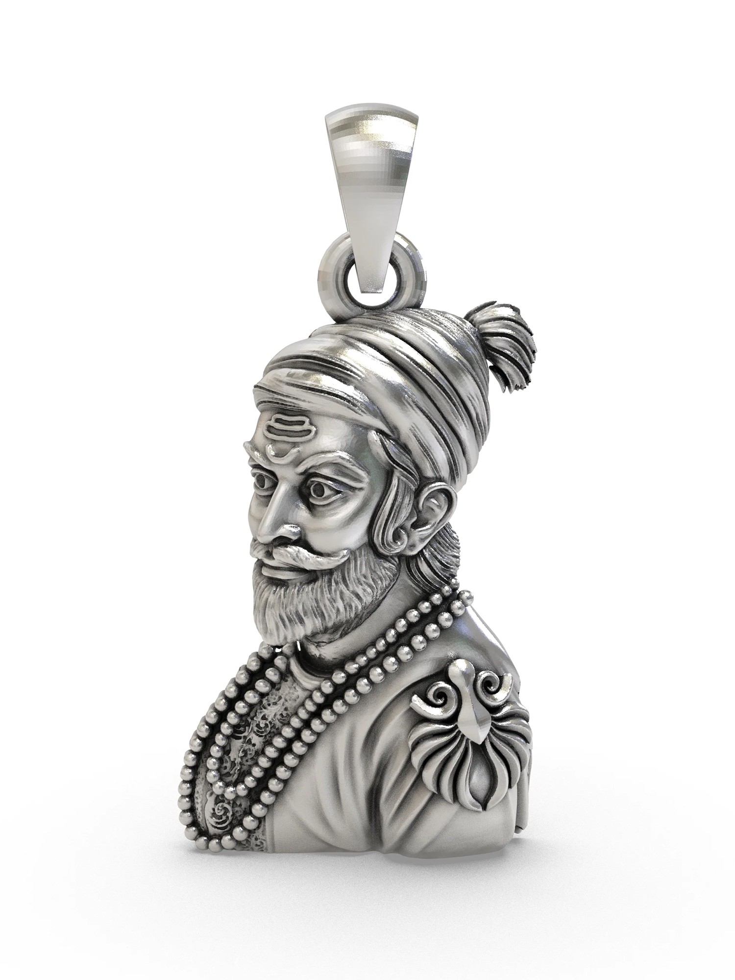This pendant pays homage to Chhatrapati Shivaji Maharaj, a revered Maratha warrior and founder of the Maratha Empire. Known for his strategic brilliance, unwavering courage, and commitment to his people, his legacy continues to inspire. Adorning yourself with this representation connects you to a profound historical narrative of valor and leadership.
