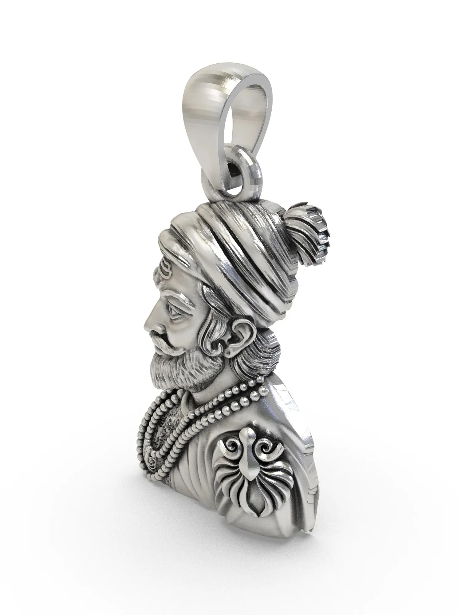 Each pendant is meticulously crafted from the finest sterling silver, showcasing an exceptional level of detail. Skilled artisans have painstakingly sculpted every feature, from the regal turban to the dignified beard, imbuing the piece with a lifelike presence. The cool, lustrous gleam of the silver enhances the intricate carvings, highlighting the dedication to traditional craftsmanship and enduring quality.